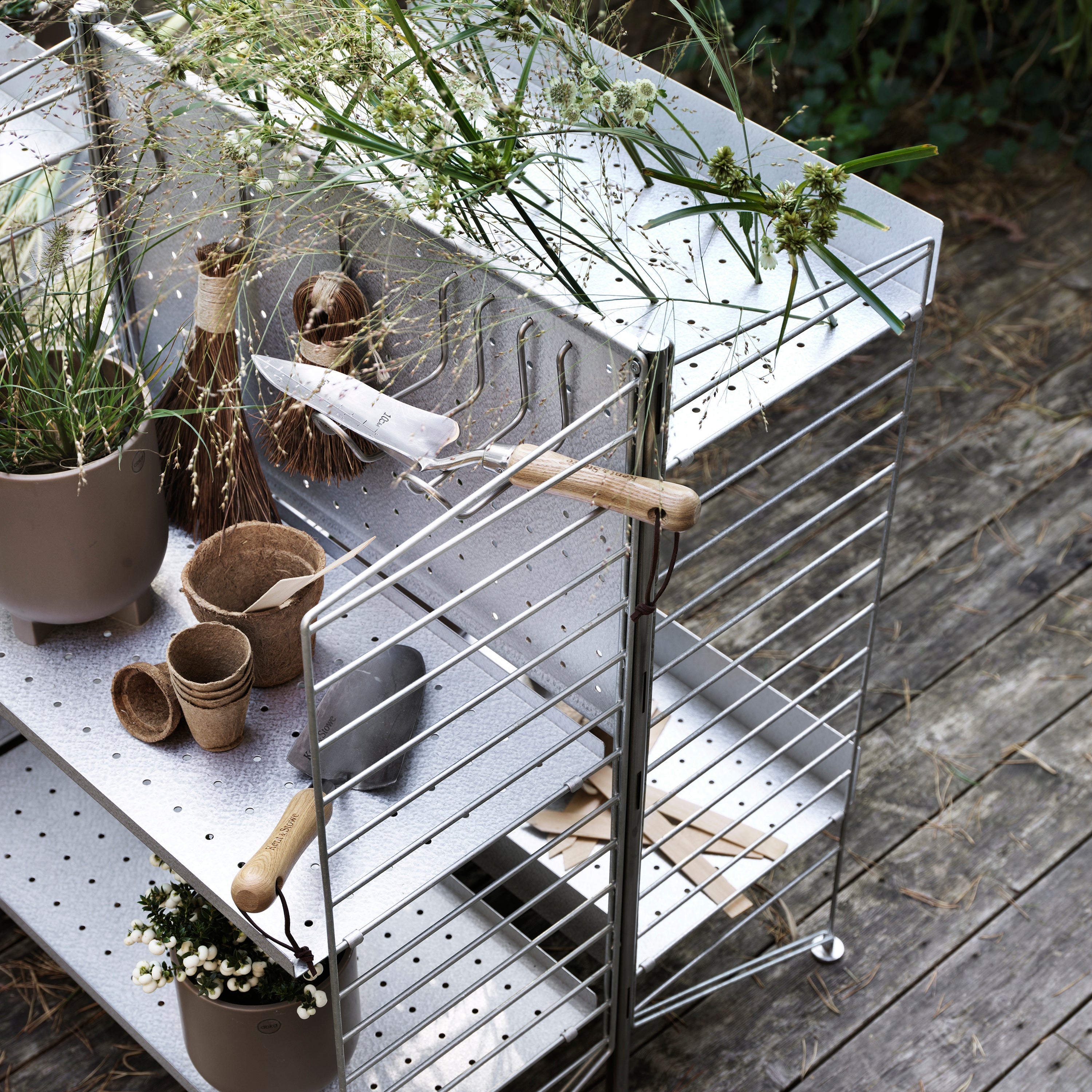 In single- and double-prong versions, String's add-on Vertical Hook is designed to fit the back panel of the freestanding outdoor shelf. Whether it's garden tools, grilling implements or any other accoutrement to outdoor activities, the hanging accessory helps keep things conveniently organized. Made of stainless steel to withstand all types of weather and sea air, the single hook comes in a package of 4 and the double in a package of 2.