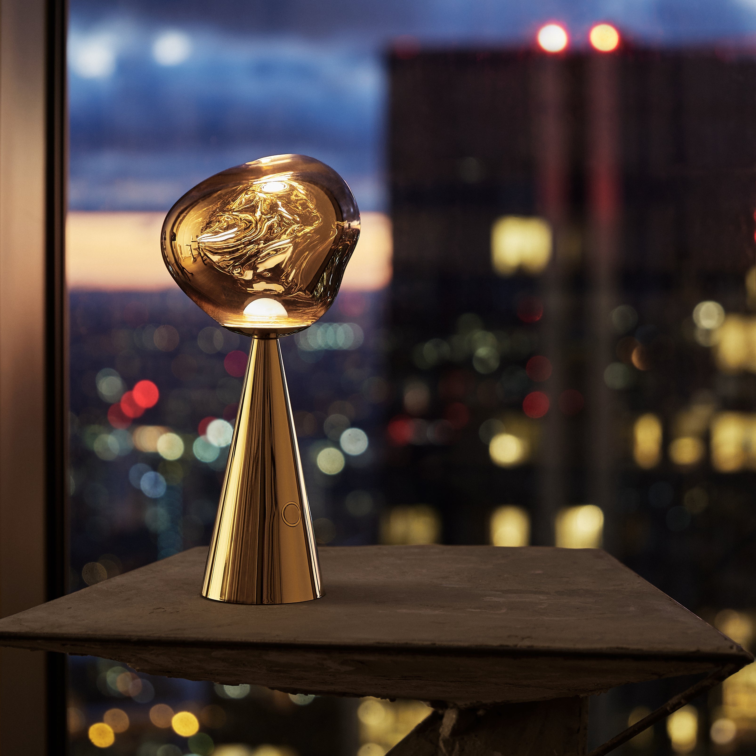 A powerful battery and an energy-efficient LED lend go-anywhere portability to Tom Dixon’s signature Melt, true to the series’ mesmerizing molten-glass effect. For desk, tabletop or even outside to the garden or patio, the lamp brings a diffused glow that lasts up to 10 hours per battery charge—while its sleek range of metallic or black finishes adds extra verve.