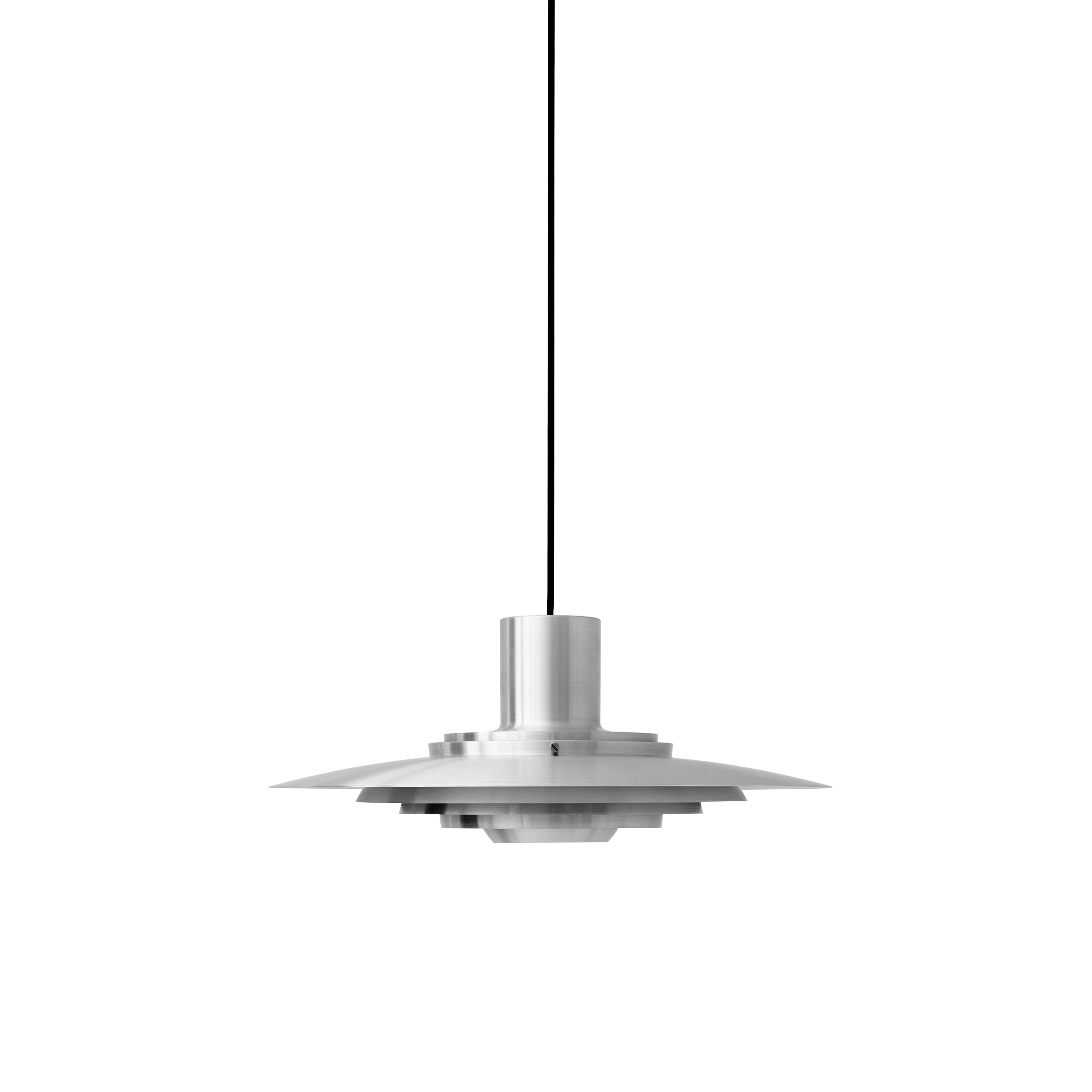 Jørgen Kastholm & Preben Juhl Fabricius were Danish architects whose work influenced the signature style of Danish Modernism. &Tradition’s relaunch of the P376 pendant lamp honours their original design from 1963. Comprising five concentric shades which gently curve towards the centre to emit a soft, diffused light, the lamp is available in either aluminium or aluminium with a white lacquer underside and in two sizes; KF1 has a diameter of 47.5cm and KF2 of 70 cm.