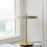 With the convenience of a hidden USB port to charge a phone even when the light is turned off, Umage adapts its minimalist Asteria as an essential desk or table lamp. It features a built-in LED panel with a white diffuser that ensures soft, even illumination in a strikingly minimalist design from Umage cofounder Sřren Ravn Christensen. Available in a range of colors with a brass stem and base to underscore its tight and sleek expression.