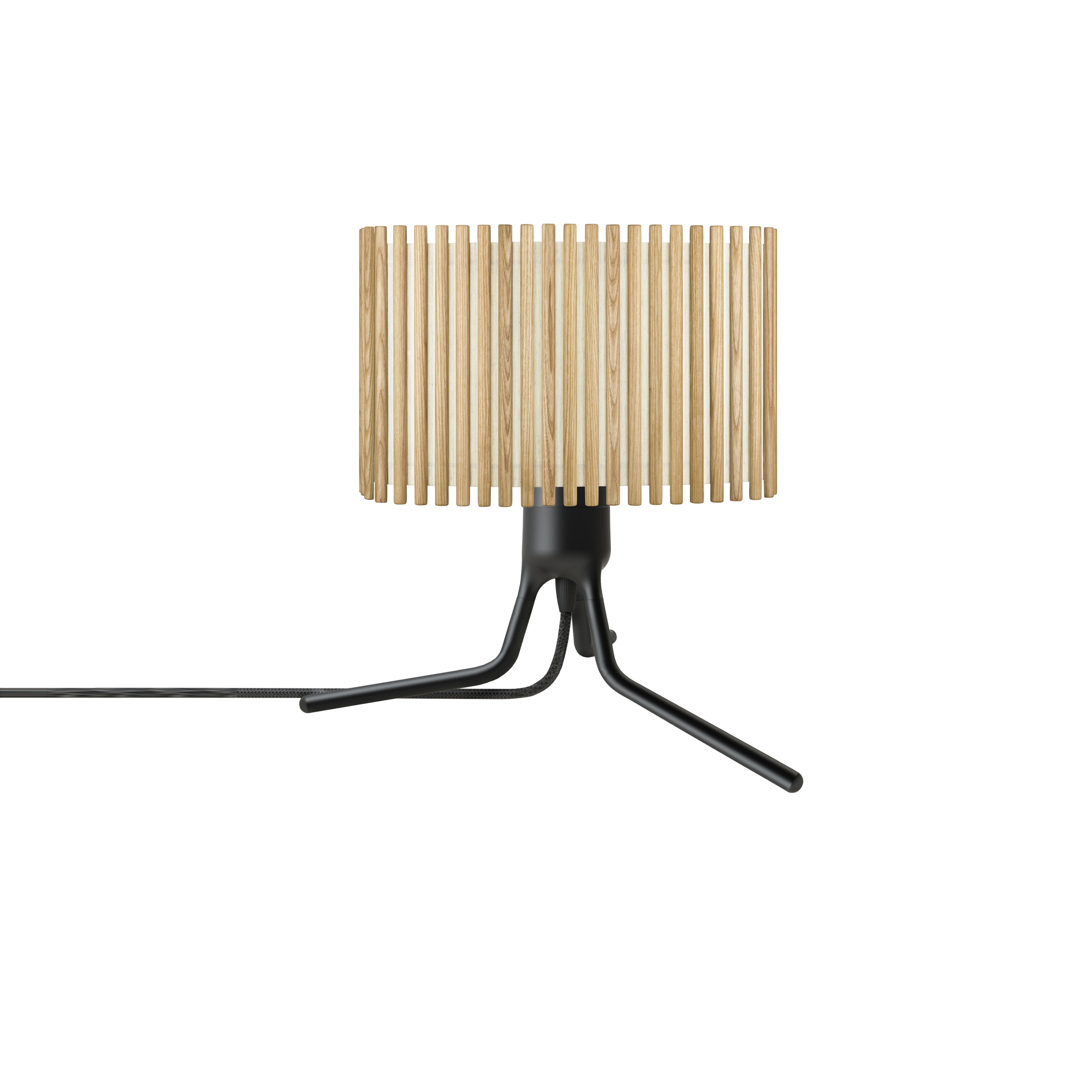 The Komorebi Rectangular Tripod Table Lamp is crafted from wooden lamellas and textiles. Available in oak and dark oak finishes, the Komorebi Rectangular Lamp brings a touch of nature-inspired elegance to any interior setting. Available in 2 sizes. The adjustable tripod base makes it an adaptable and durable task light.