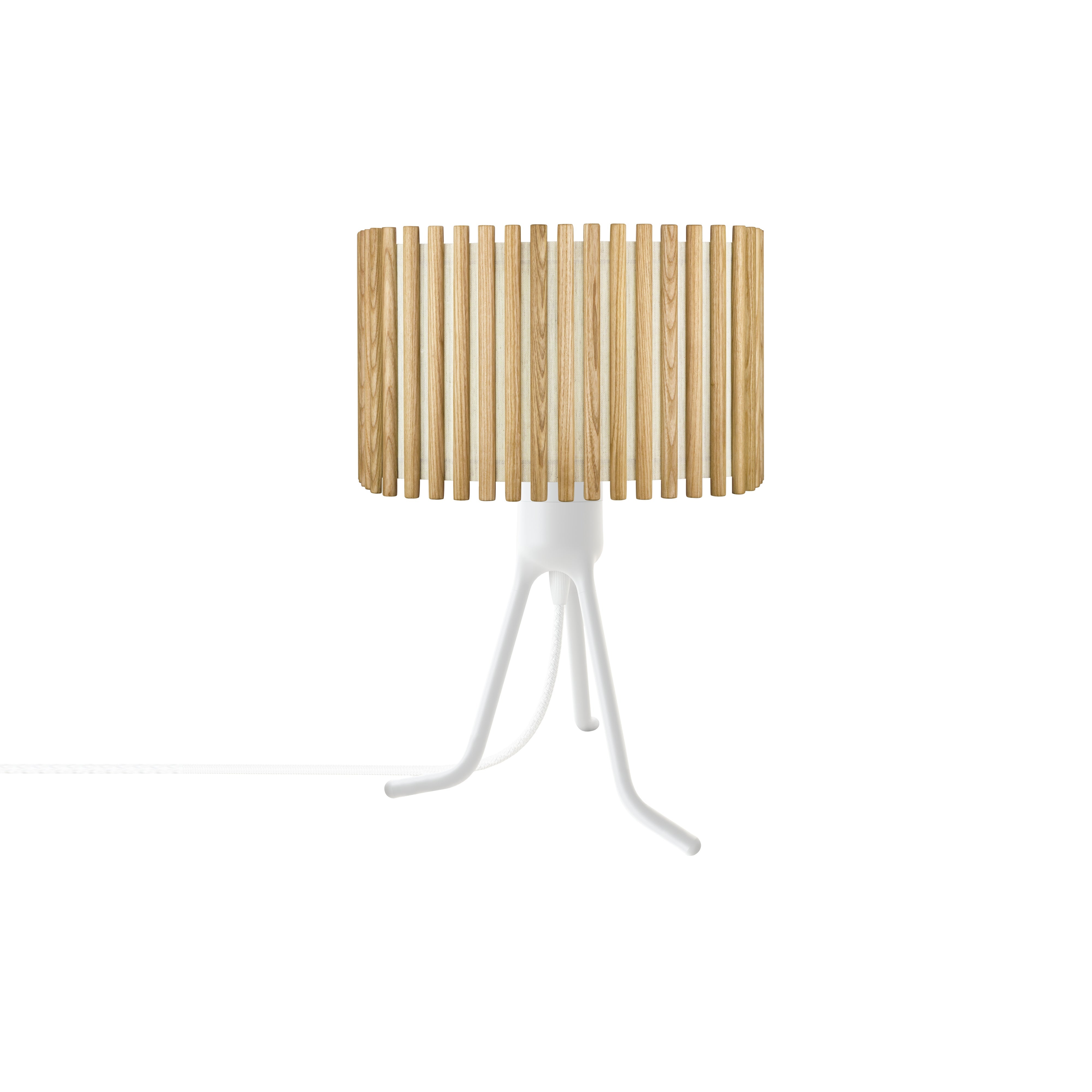 The Adjustable Tripod Square Table Lamp is crafted from wooden lamellas and textiles. Available in oak and dark oak finishes and in 2 sizes. The adjustable tripod base makes it an adaptable and durable task light.