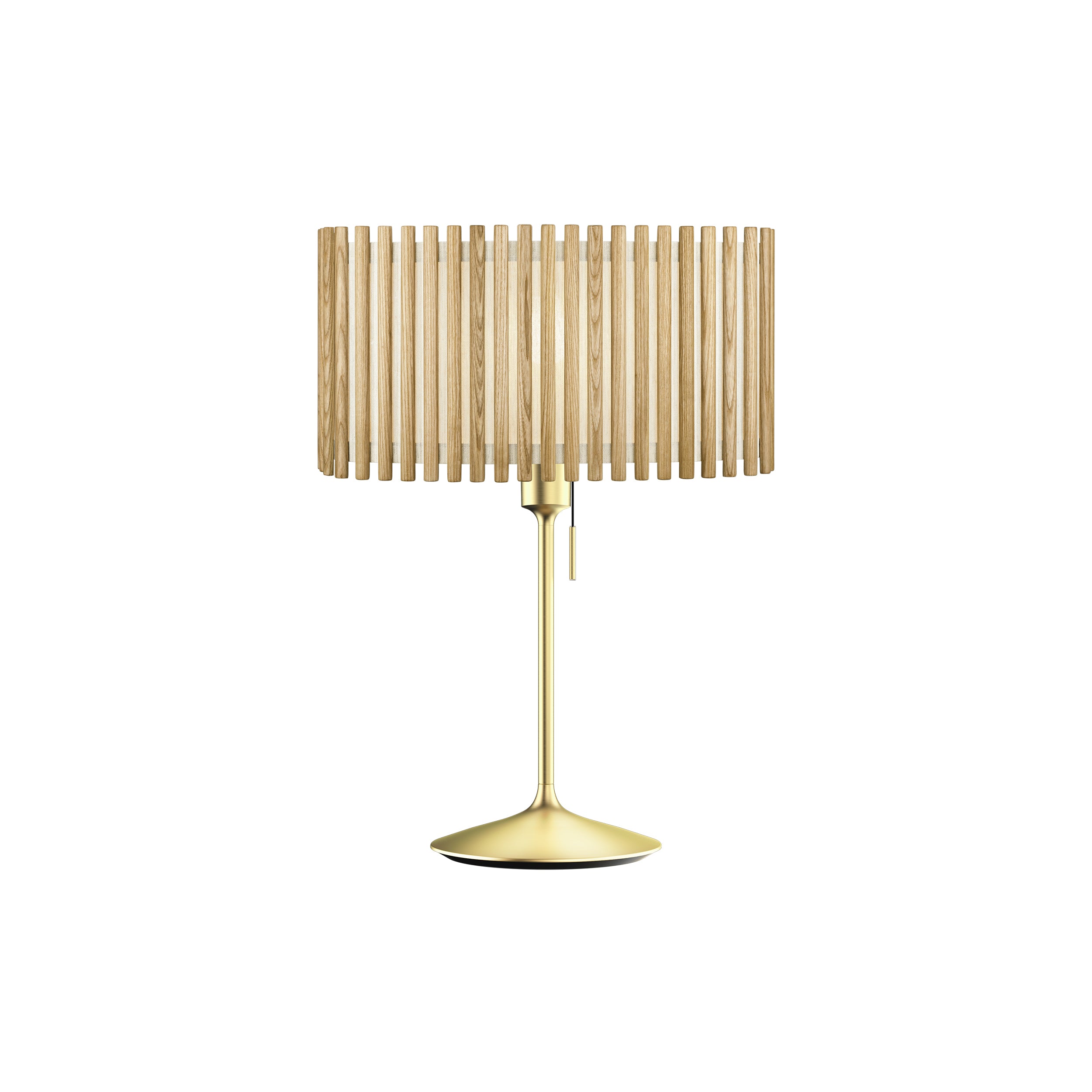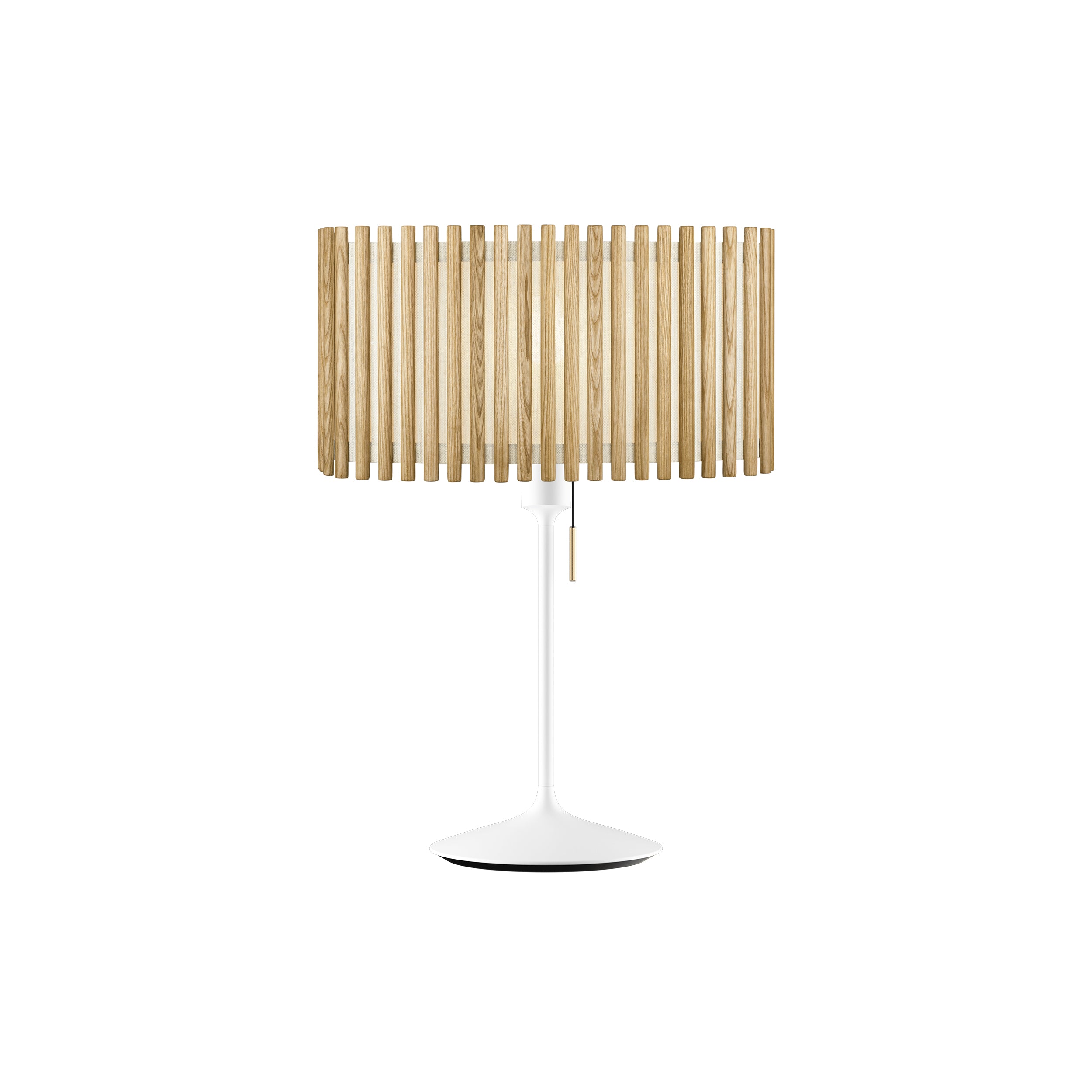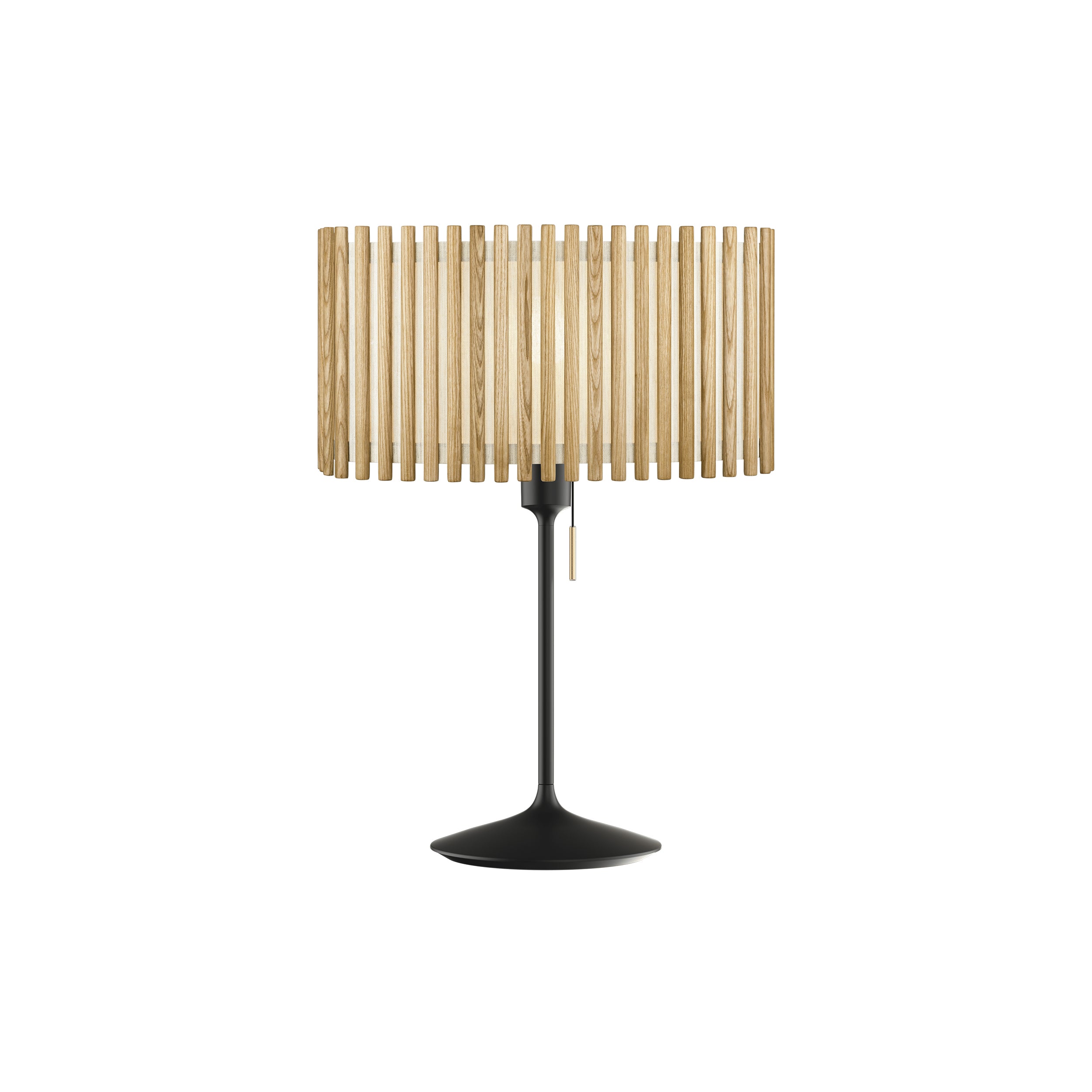 The Rectangular Table Lamp combines natural materials with minimalist design. Crafted from wooden lamellas and textiles, Available in oak and dark oak finishes and in 2 sizes.