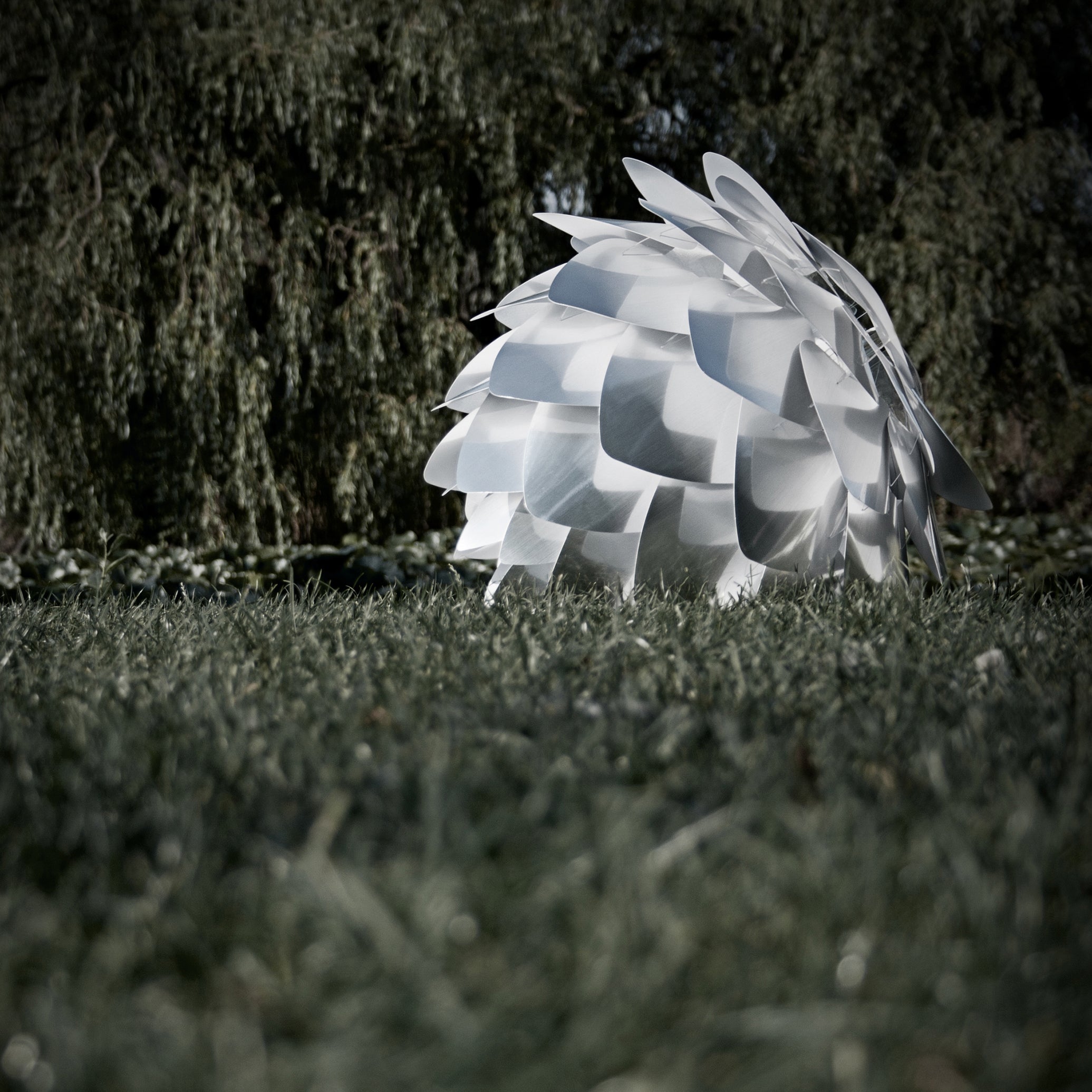 With its triangulated metal shade and slim stand that echoes a champagne flutes stem, Silvia lends a modern glamour to its surroundings. The floor lamp version of Sřren Ravn Christensens organic design brings warm, glare-free LED illumination via its unfolding layers, in a choice of rich metallics or clean white or grey. Choose either the versatile medium or diminutive mini Silvia to pair with the slender base in white, black, brushed steel or brushed brass.