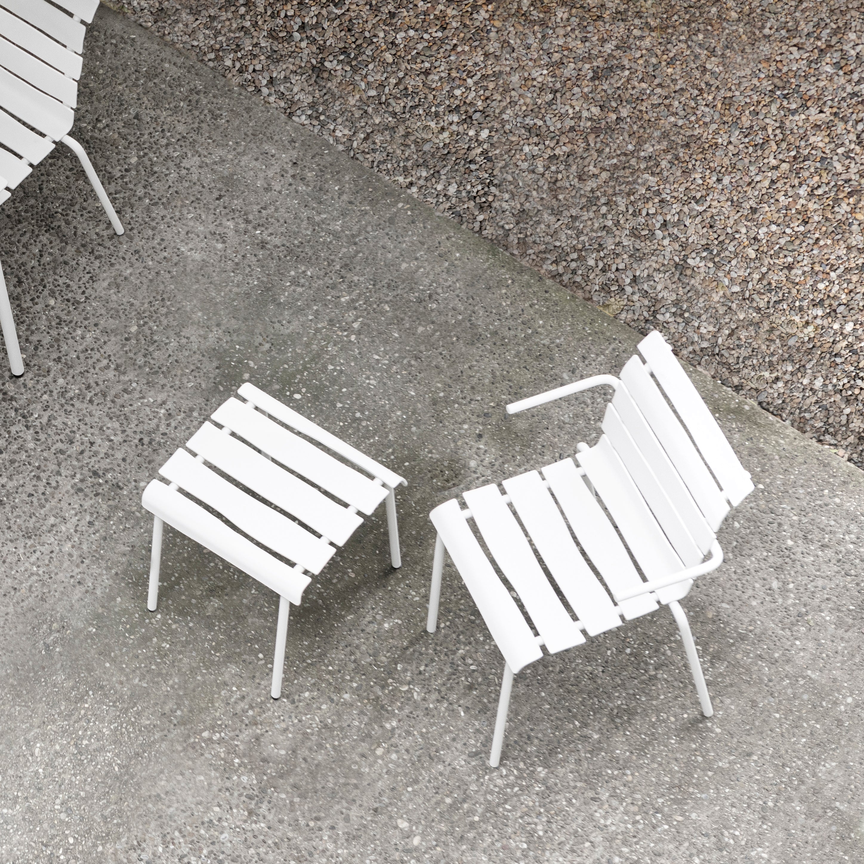 With its slightly uneven slatted motif, Aligned makes for an outdoor stool that’s as engaging as it is useful. From the whimsical hand of Belgian designer Marten Baas, the durable piece can be used as an extra seat or a convenient side table — both indoors and out. Baas’ charmingly irregular original pencil sketch is faithfully reproduced by Valerie Objects in heat-lacquered aluminum with a choice of off-white, black or signal yellow.