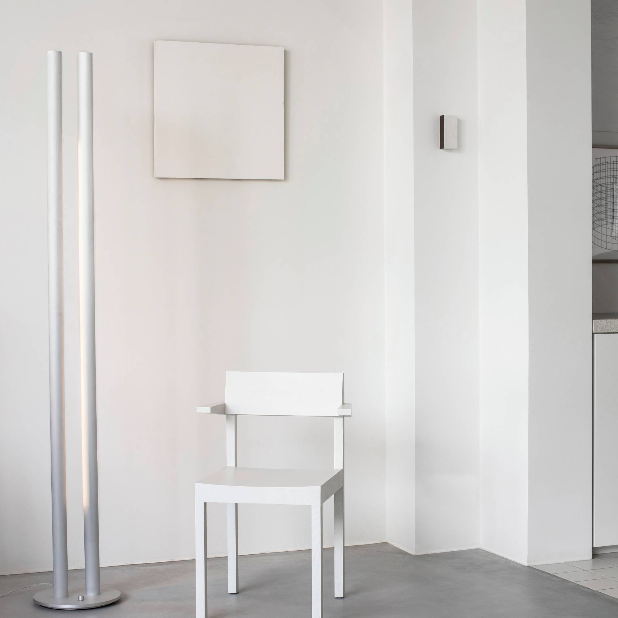 Young Belgian designer-architect Pierric de Coster is a minimalist deep in his heart, as seen in L1, his striking floor lamp for Valerie Objects composed of just 2 standing tubes. One cylinder sheds light on the other, which in turn reflects the light again—in sum, a vertical sculpture with a zephyr glow floating in the middle, created with an absolute minimum of means.