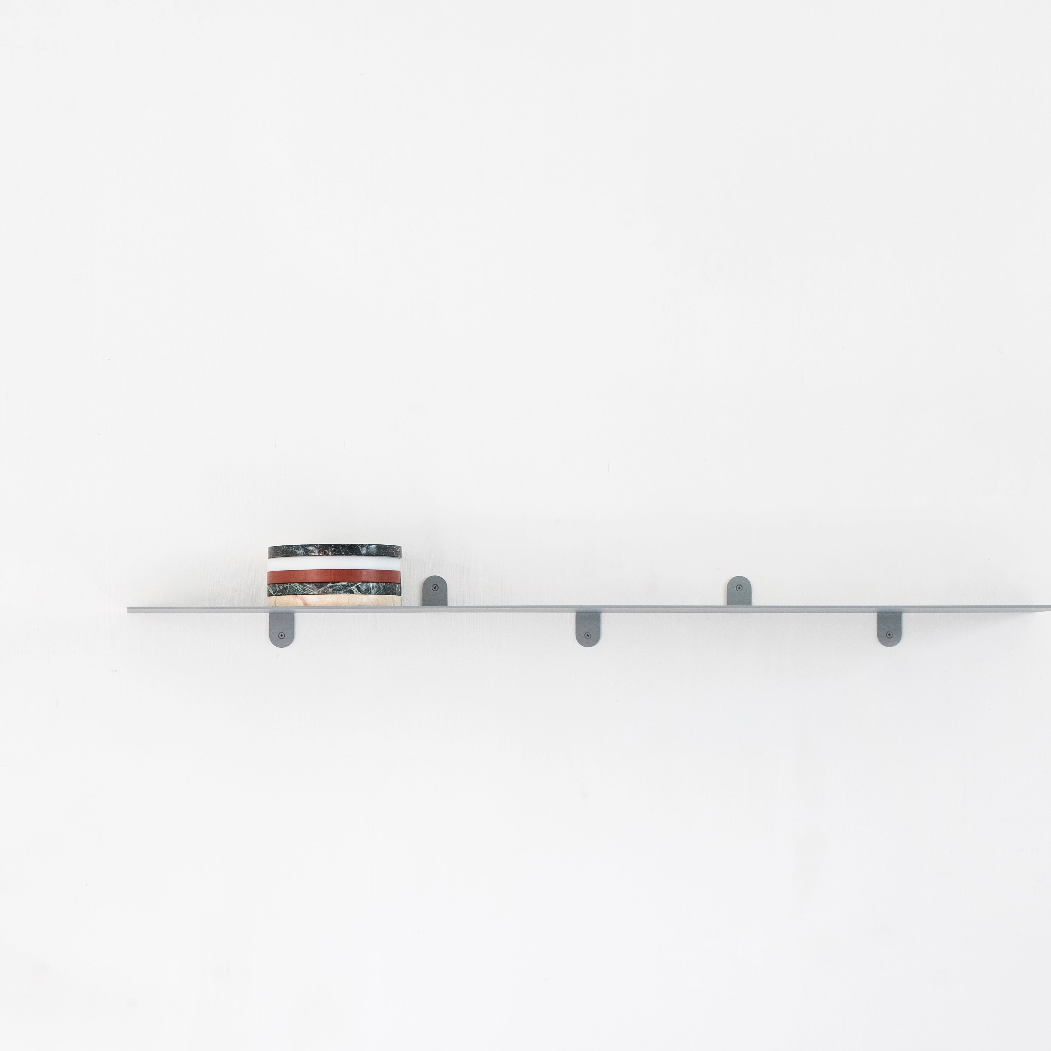 A striking 2 meters long (or just over 6 feet), Muller Van Severen’s wall shelf brings stylishly expansive storage or display possibilités to a room. The steel unit N°2 is all sleek lines, incorporating laser-cut flaps that seamlessly hold it in place. Available in a range of edited color choices from calming neutrals to sprightly accents.