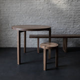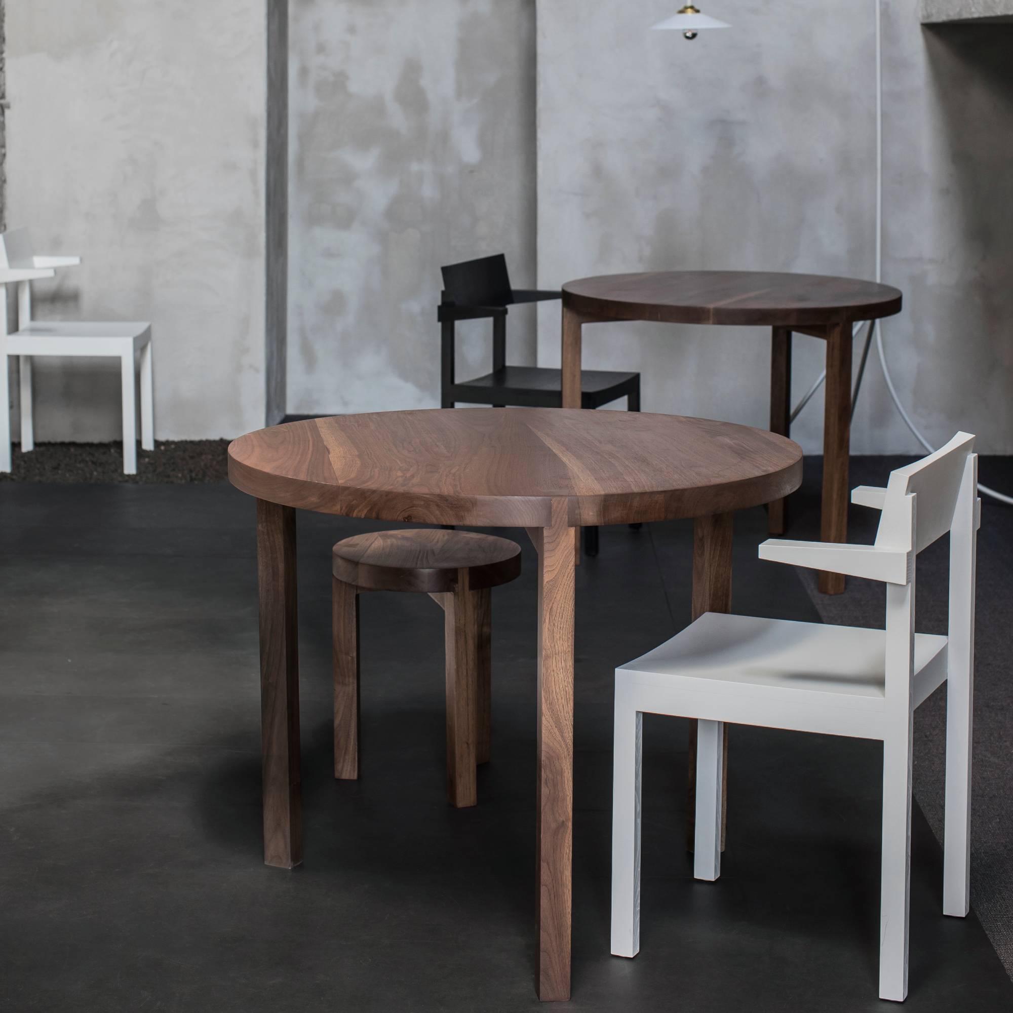 Belgian designer and second-generation cabinetmaker Laura Greindl ennobles her fascination with traditional wood joinery in her Solid Dining Table. Constructed without using any nails or screws, every joint is cut by hand, using chisels and a Japanese Dozuki handsaw for precision. Timelessly simple in concept, the round table is crafted in solid walnut, joining Valerie Objects’ companion bench and stool from the collection (also at A+R).