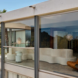 The Cloverleaf Sofa is a modular seating system composed of curved, interlocking units that can be configured to suit a variety of spaces. Each module—left, right, middle, or extension—features a sculpted backrest that defines seating areas on both sides, encouraging social connection while allowing personal space. Built with a sturdy wood frame and CMHR foam for lasting comfort, the sofa is fully upholstered and available in multiple fabric options.