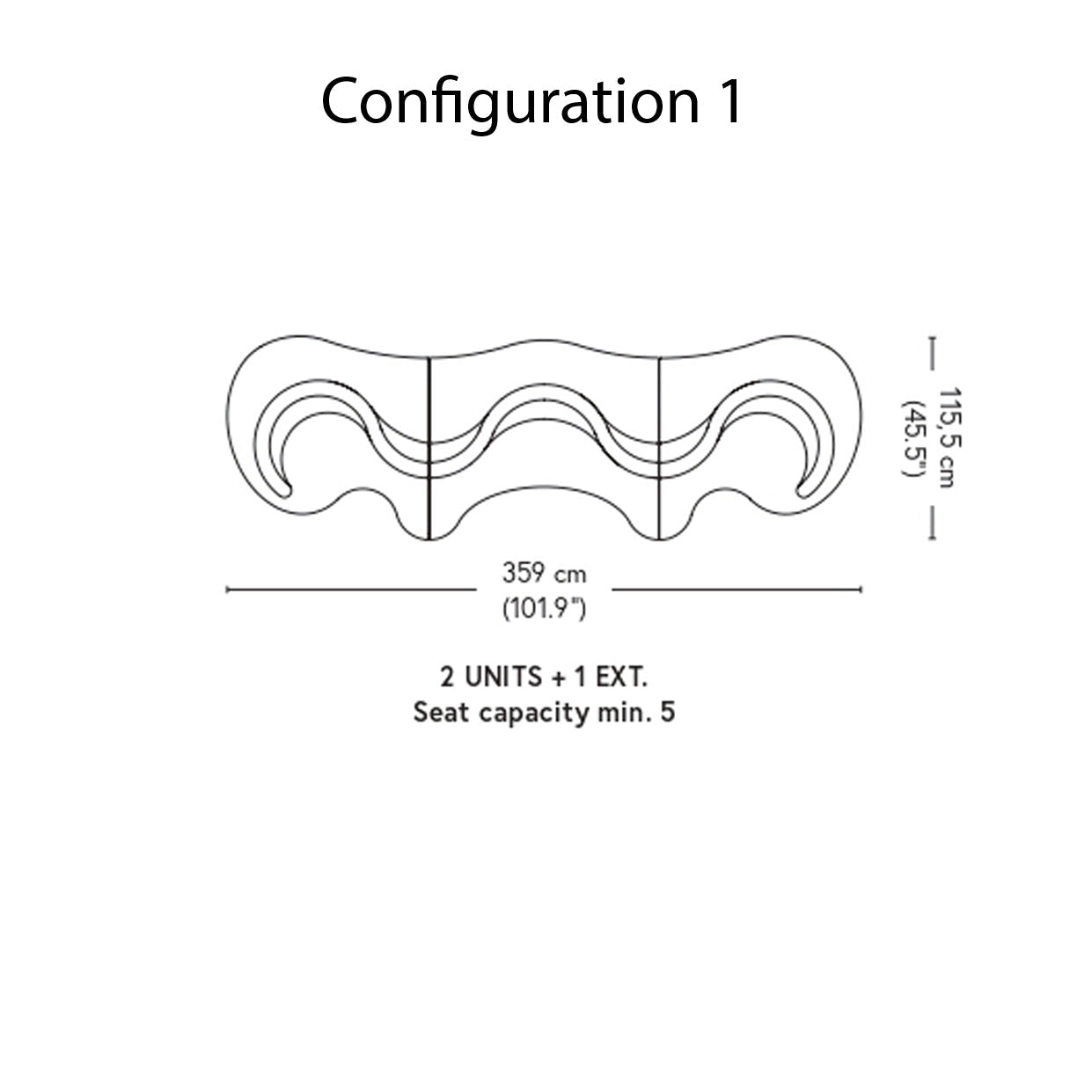 - Configuration 1: 31.5" h x 90.2" w x 45.5" d (80x229x115.5cm)