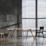 Branchmark (8) could be described as a dance of table legs, with its ballet-like grouping of uprights artfully akimbo—and one displaying a hand-carved flourish. Designed by Swedish architects Wingårdhs, the artisanal piece makes use of Bosnian brand Zanat's woodcraft heritage cited by UNESCO for cultural preservation. In a range of sustainably sourced timbers and select finishes, Branchmark (8) Table has also garnered the renowned Interior Innovation Award.