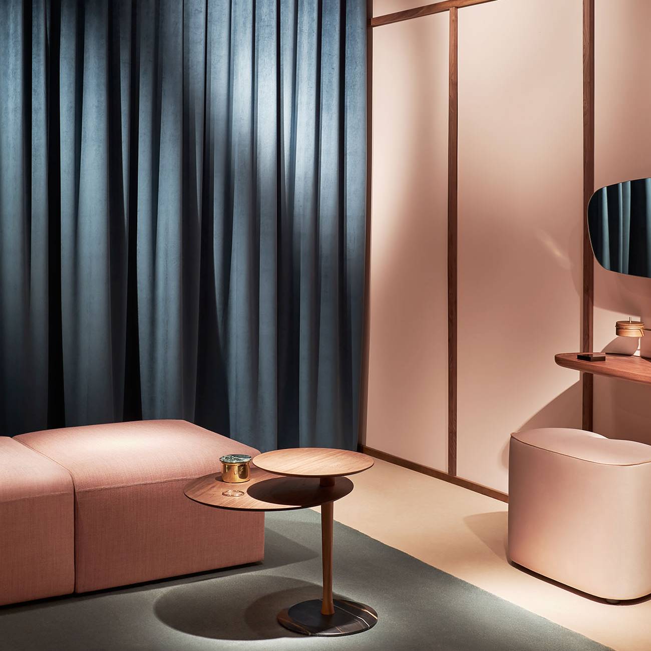 Barcelona furnishings brand Nomon Home calls its unparalleled pieces "jewelry for a home," as this side table with a functional swivel top aptly illustrates. Vaiven rises from an exquisite marble base, with a lathe-turned upright balancing the dual movable surfaces in a choice of solid and veneered walnut or black-stained ash. Designer Andrés Martínez's elegant flourish adds a final accessorizing note that's welcome in spaces both private and public.