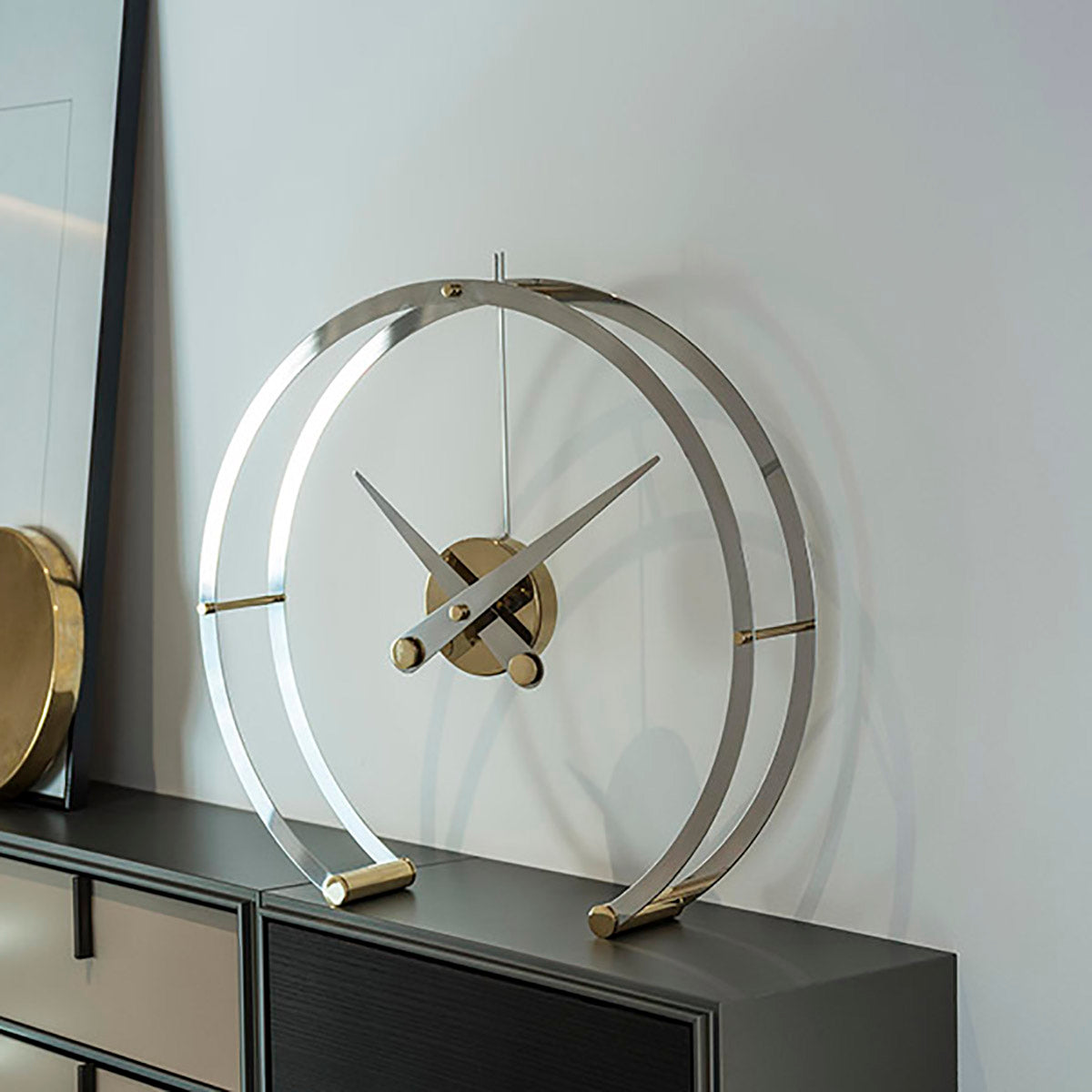 With an arching form that suggests the last letter of the Greek alphabet, Barcelona’s Nomon offers a superb metal table clock with double polished-steel rings resting on their connecting bases. Handmade in Spain, Omega is powered by a German-origin quartz movement and assembled with attention to every detail.