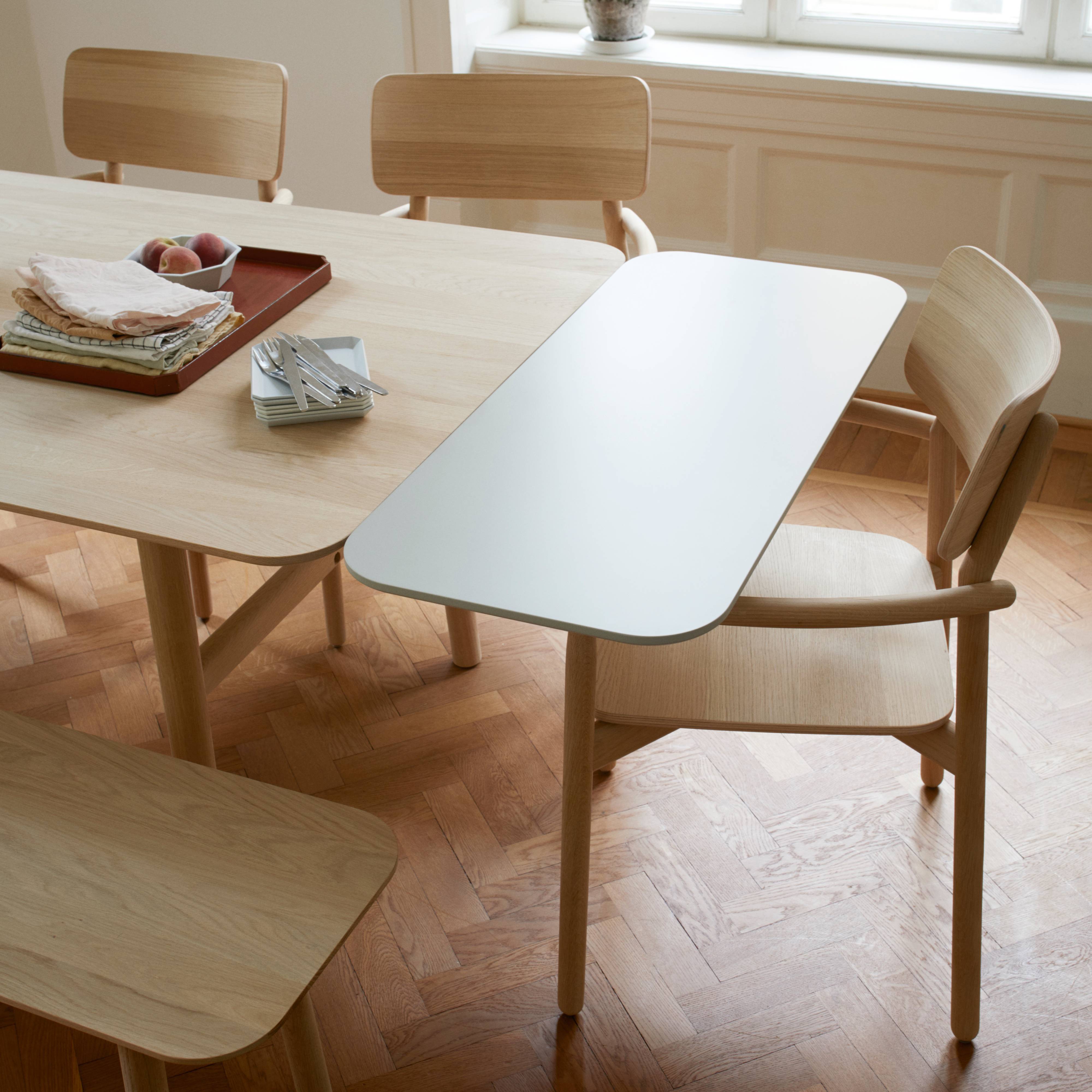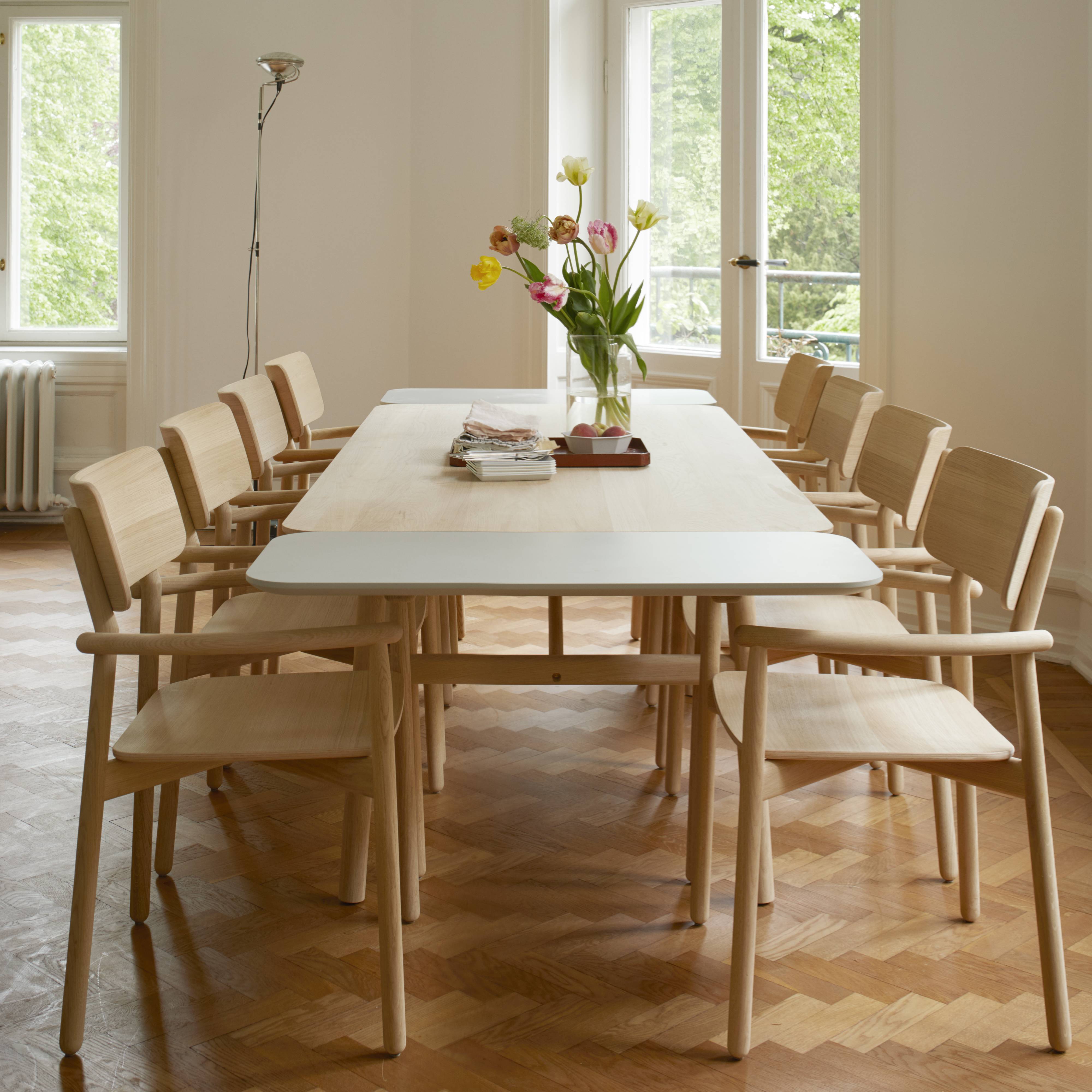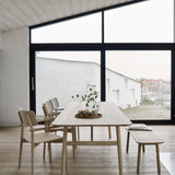 Designer Anton Björsing’s Hven collection encompasses a superb dining table that glories in Scandinavian woodcraft with its stunning grain pattern. Fashioned in solid oak from FSC-certified resources, the table’s virtues also include long-wearing durability and a versatility that suits a variety of interiors. Generously proportioned in either of its 2 sizes, Hven is also airily scaled and finessed with rounded corners and legs.