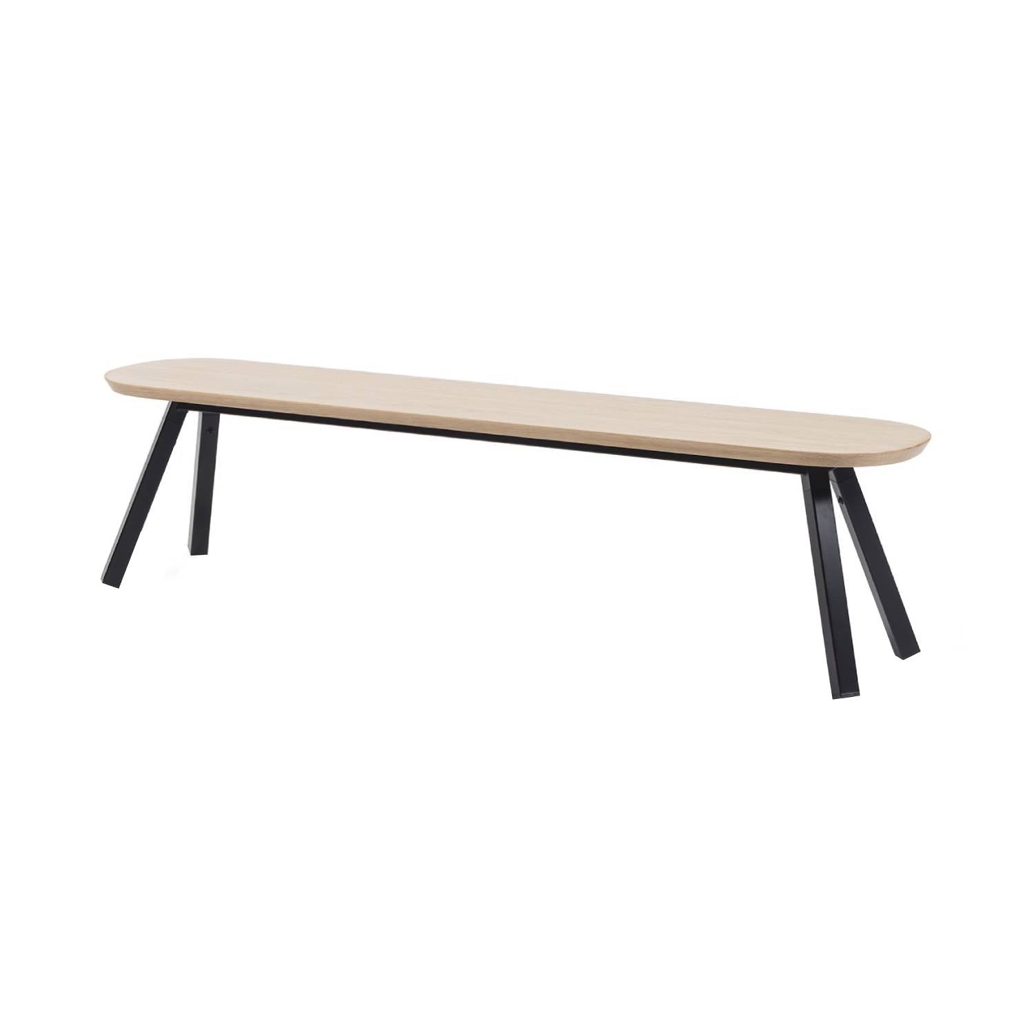 Take a load off in style with the You and Me collection of benches to complement RS Barcelona's standout ping-ping/conference/dining table of the same name. Good for the grownups and the kids alike—with sturdy steel legs and framework finished in graphic black or white powder-coat. Designers Antoni Pallej à and Júlia Polbach add a mellow note with the choice of rich iroko or oak wood for the seat. With a selection of optional cushions available for either indoor or outdoor use.