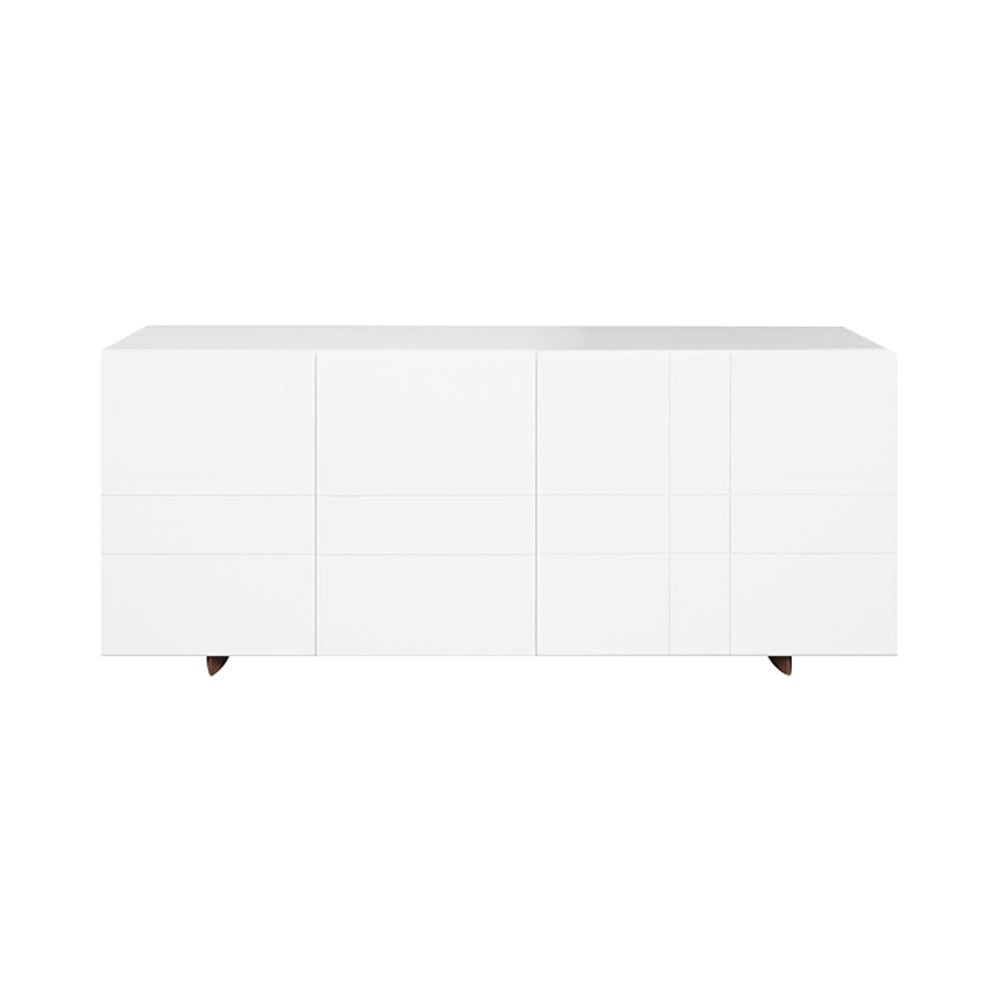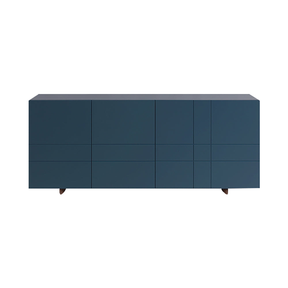 Suggested by tartan plaid, Swedish maker Asplund offers a strikingly geometric sideboard with a choice of versatile storage alternatives. Kilt 137 comes with either a removable shelf behind each of 3 doors or a 2-door version with an added pair of drawers situated at the right. Fashioned in lacquered MDF in a range of colors or several wood veneer options, architect-designers Claesson Koivisto Rune's cabinet has openings at the back for ventilation or cables and solid-oak runner legs.