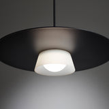 Giving off an ethereal glow, Terence Woodgate’s sculptural Sum Pendant features an innovative LED module, allowing it to be fitted directly to mains without a driver or transformer. A striking black or white disc provides reflective dramatics, floating above the light module glowing inside its own white silicone shade