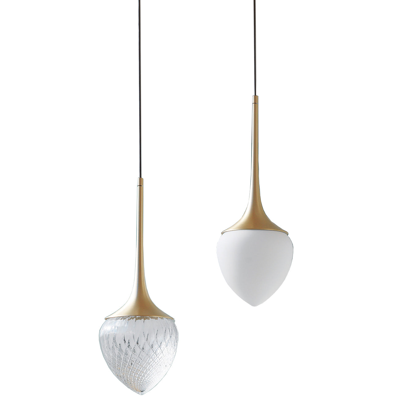 Like its smaller Louis brother pendant, the larger version recalls the age of jazz with its trumpet shape. Chose from a range of chic metal finishes for the solid-brass fixture, with an elegant mouth-blown diffuser in a choice of clear or opal patterned glass. A standout alone or lovely in a combo when mixed with the smaller Louis or CVL's complementary Flèa lighting range.