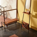 Known for his interiors and set designs, David Rockwell imbues Valet Seated Bench with a forthright but luxe personality. The elements are all precise: a blackened steel frame, American walnut bench and a sumptuous quilted saddle-leather cushion. A cutout on one side of the bench accommodates a leather sling pocket for magazines or sundries. And leather-cord wrapped handles and brass detailing add a refined finish.