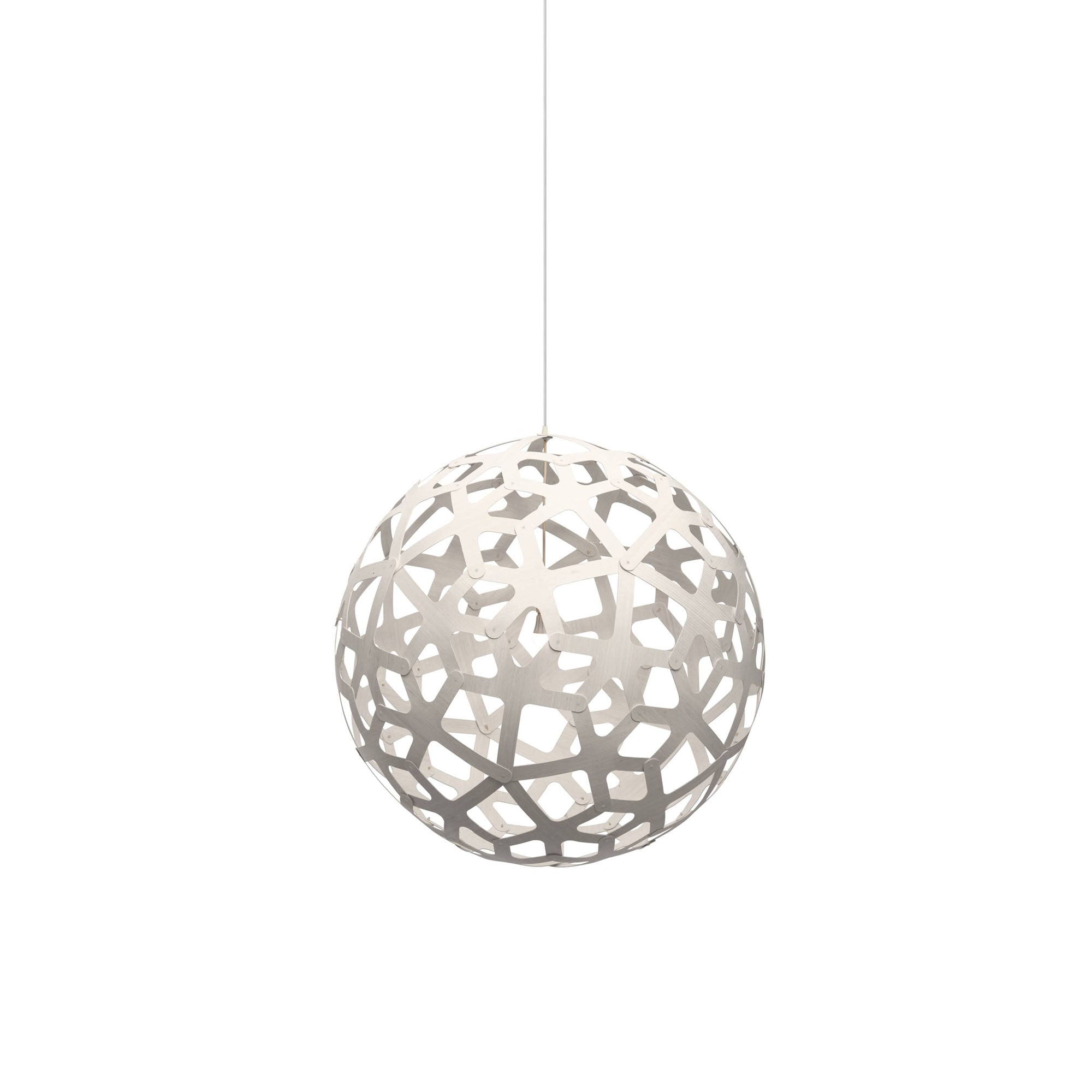 The "fingers" of the geometric polyhedron structure of this lamp are reminiscent of the coral reefs David Trubridge explores off the coast of New Zealand. A love for earth drove the construction, flatpacked to reduce freight and packing resources. Identical pieces make home assembly a snap. The celebrated designing craftsman ended up in his adopted home after he, his wife and their two sons sold everything and set off on a yacht for a world adventure. It culminated in 1985 when they decided to remain there. While an artist-in-residence at Hawkes Bay Polytechnic (now EIT), he built a house and suddenly found himself with further commissions. Before realizing homes, lamps and furniture, David left Newcastle University in 1972 with a degree in Naval architecture. His work has appeared in countless museums, including the Victoria & Albert and the Pompidou Centre. That barely scratches the surface of his fascinating story and work ethos.