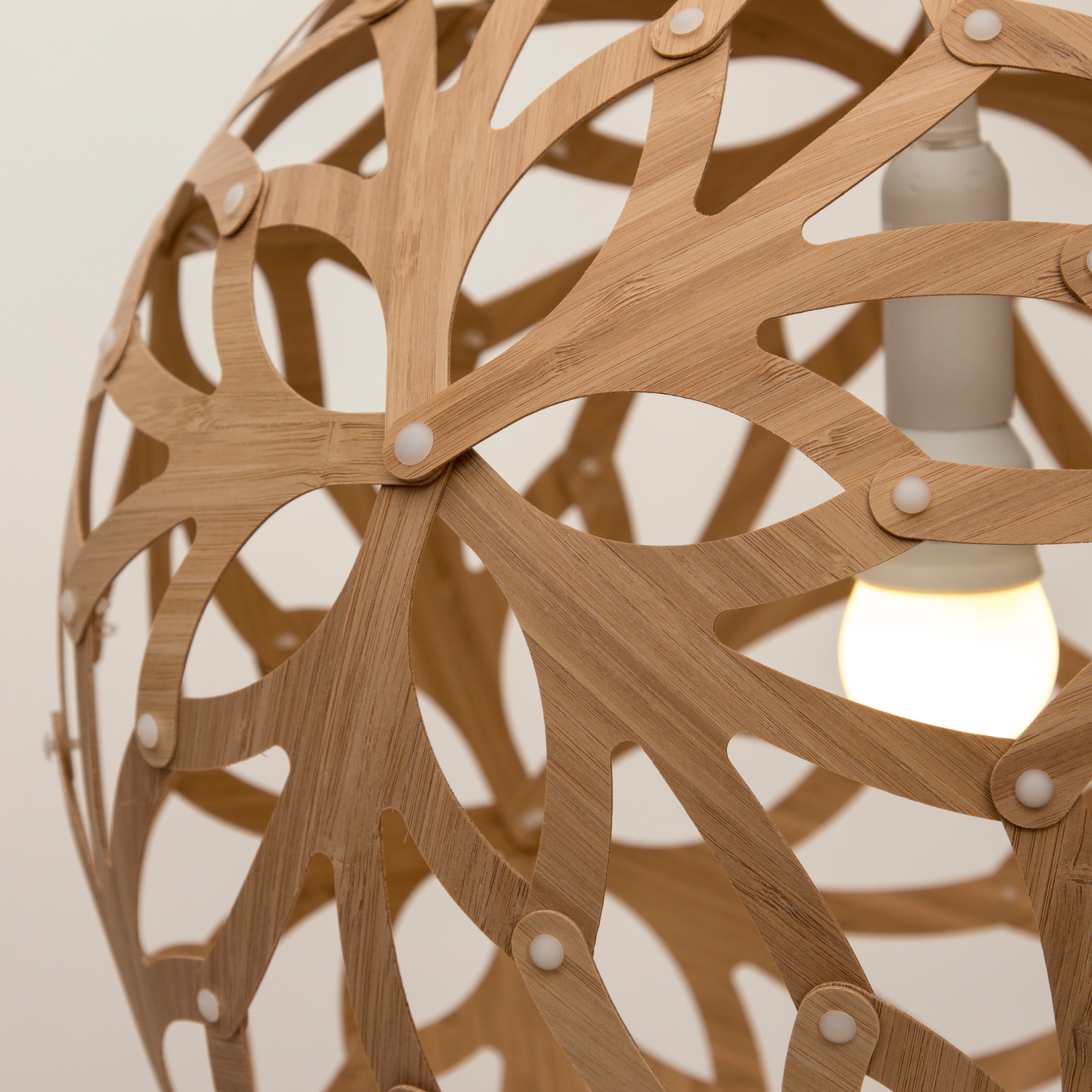"I photographed this beautiful flower on the Bibulman track in Western Australia," says David Trubridge of this spin on his ball-shaped lamps based on the geometric polyhedron structure. A love for earth drove the construction, flatpacked to reduce freight and packing resources. Identical pieces make home assembly a snap. The celebrated designing craftsman ended up in his adopted home of New Zealand after he, his wife and their two sons sold everything and set off on a yacht for a world adventure. It culminated in 1985 when they decided to remain there. While an artist-in-residence at Hawkes Bay Polytechnic (now EIT), he built a house and suddenly found himself with further commissions. Before realizing homes, lamps and furniture, David left Newcastle University in 1972 with a degree in Naval architecture. His work has appeared in countless museums, including the Victoria & Albert and the Pompidou Centre. That barely scratches the surface of his fascinating story and work ethos.