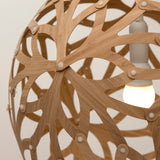 "I photographed this beautiful flower on the Bibulman track in Western Australia," says David Trubridge of this spin on his ball-shaped lamps based on the geometric polyhedron structure. A love for earth drove the construction, flatpacked to reduce freight and packing resources. Identical pieces make home assembly a snap. The celebrated designing craftsman ended up in his adopted home of New Zealand after he, his wife and their two sons sold everything and set off on a yacht for a world adventure. It culminated in 1985 when they decided to remain there. While an artist-in-residence at Hawkes Bay Polytechnic (now EIT), he built a house and suddenly found himself with further commissions. Before realizing homes, lamps and furniture, David left Newcastle University in 1972 with a degree in Naval architecture. His work has appeared in countless museums, including the Victoria & Albert and the Pompidou Centre. That barely scratches the surface of his fascinating story and work ethos.