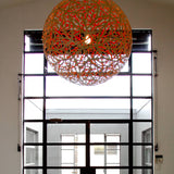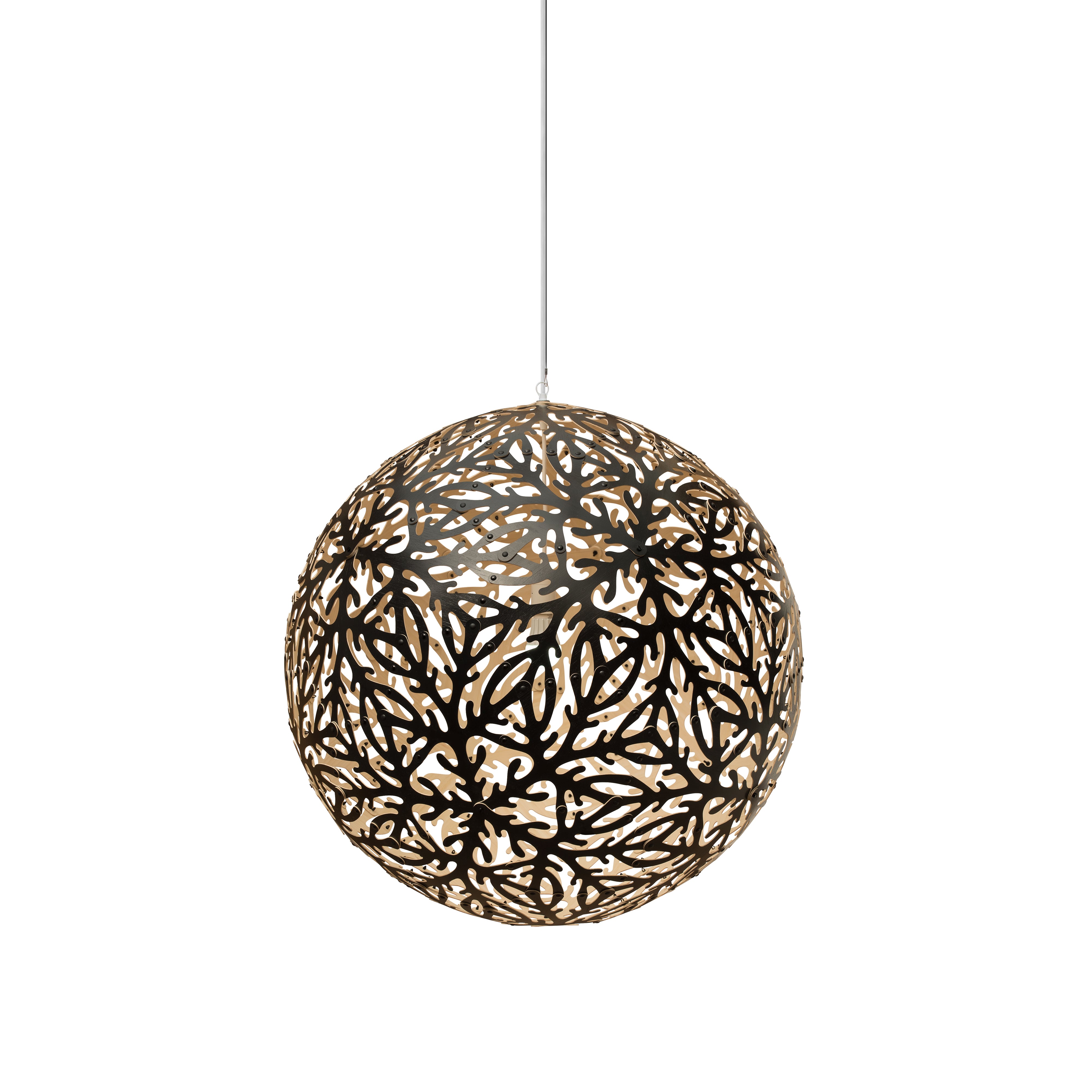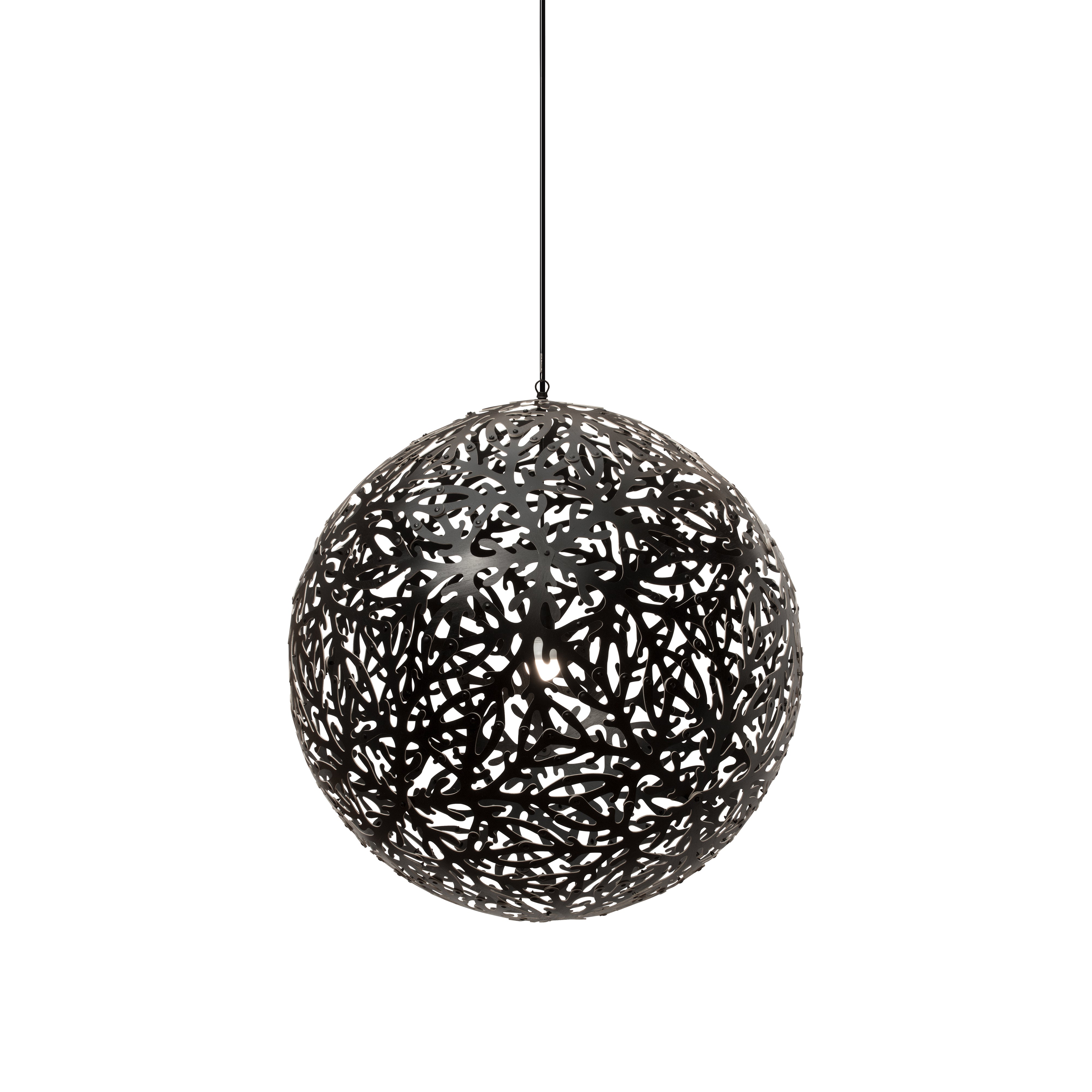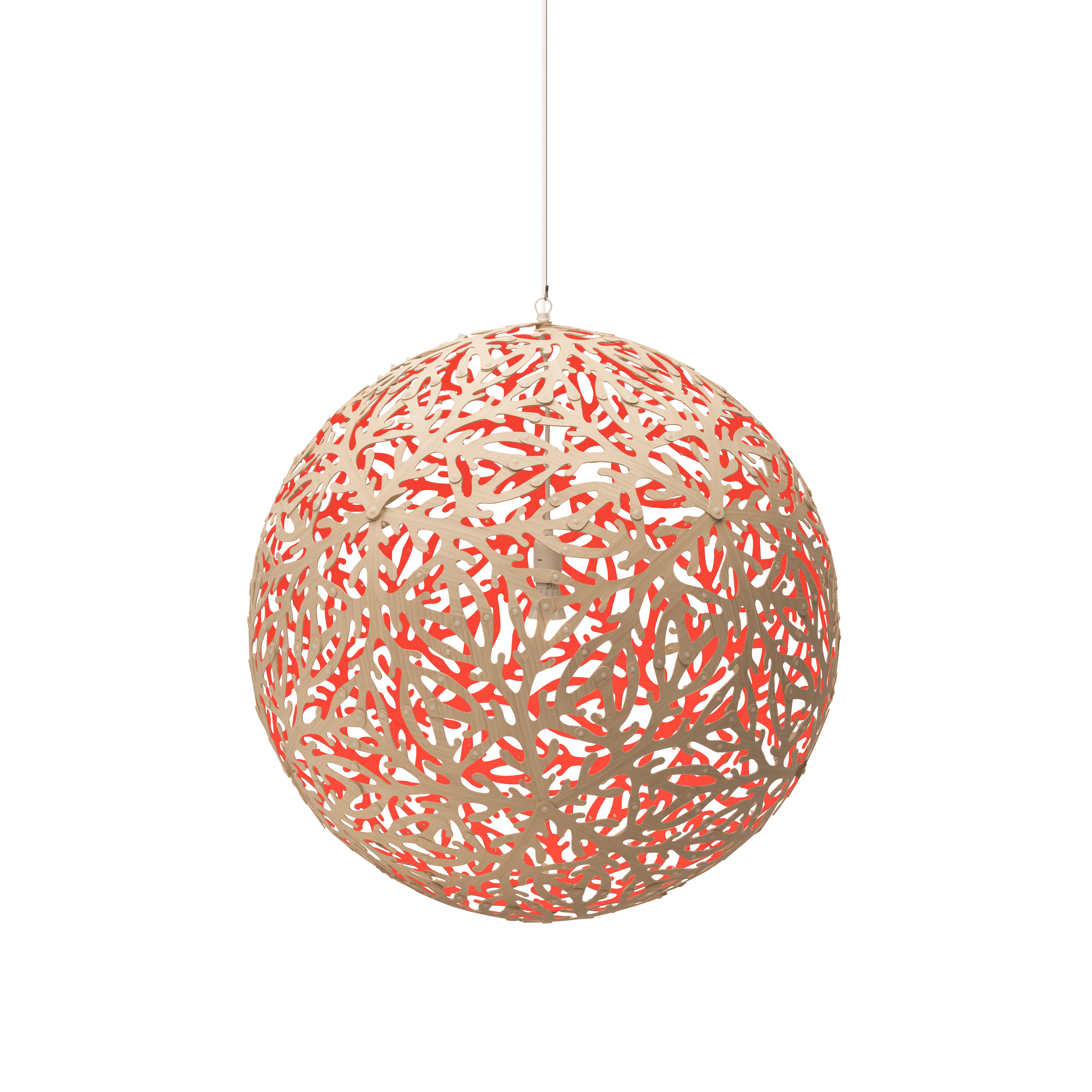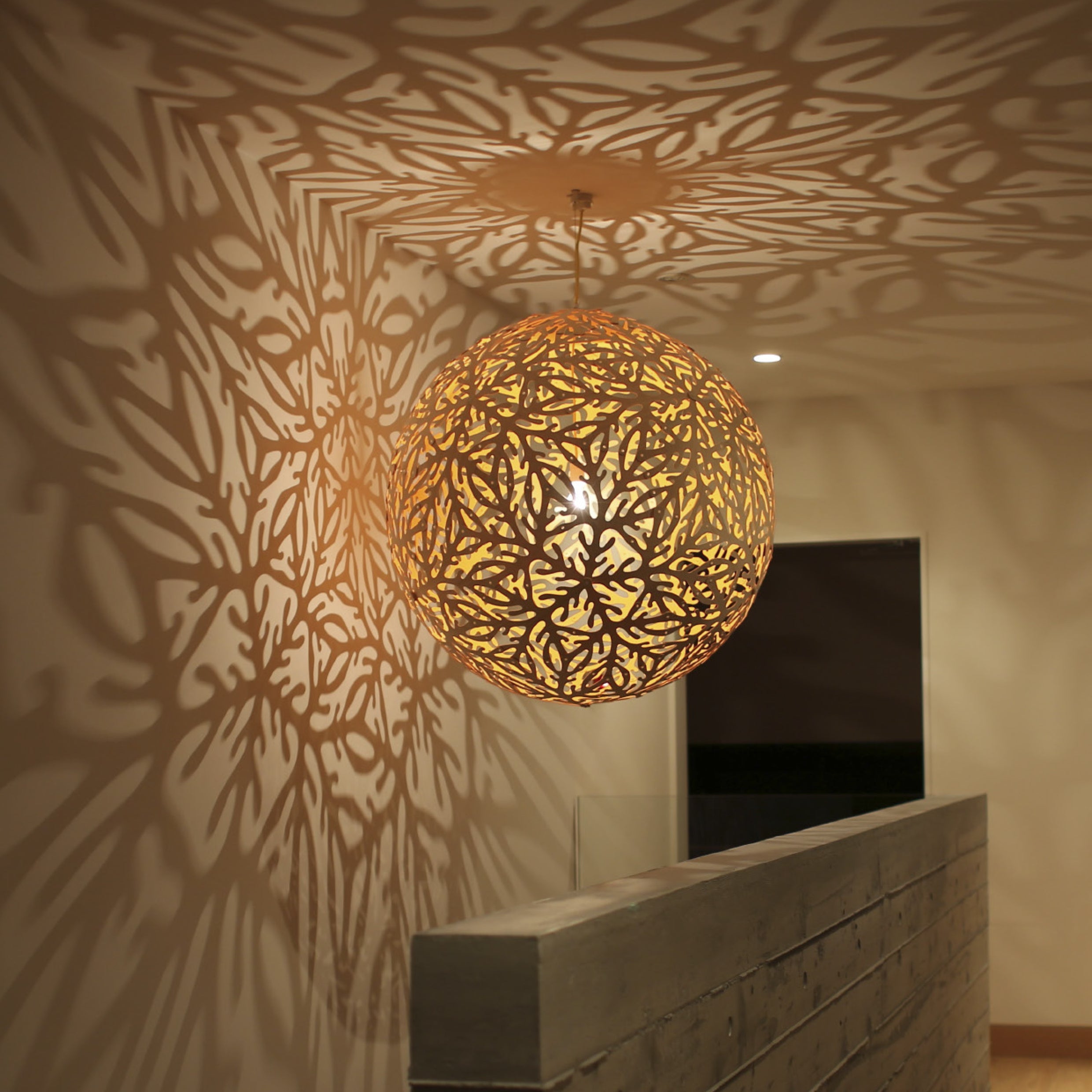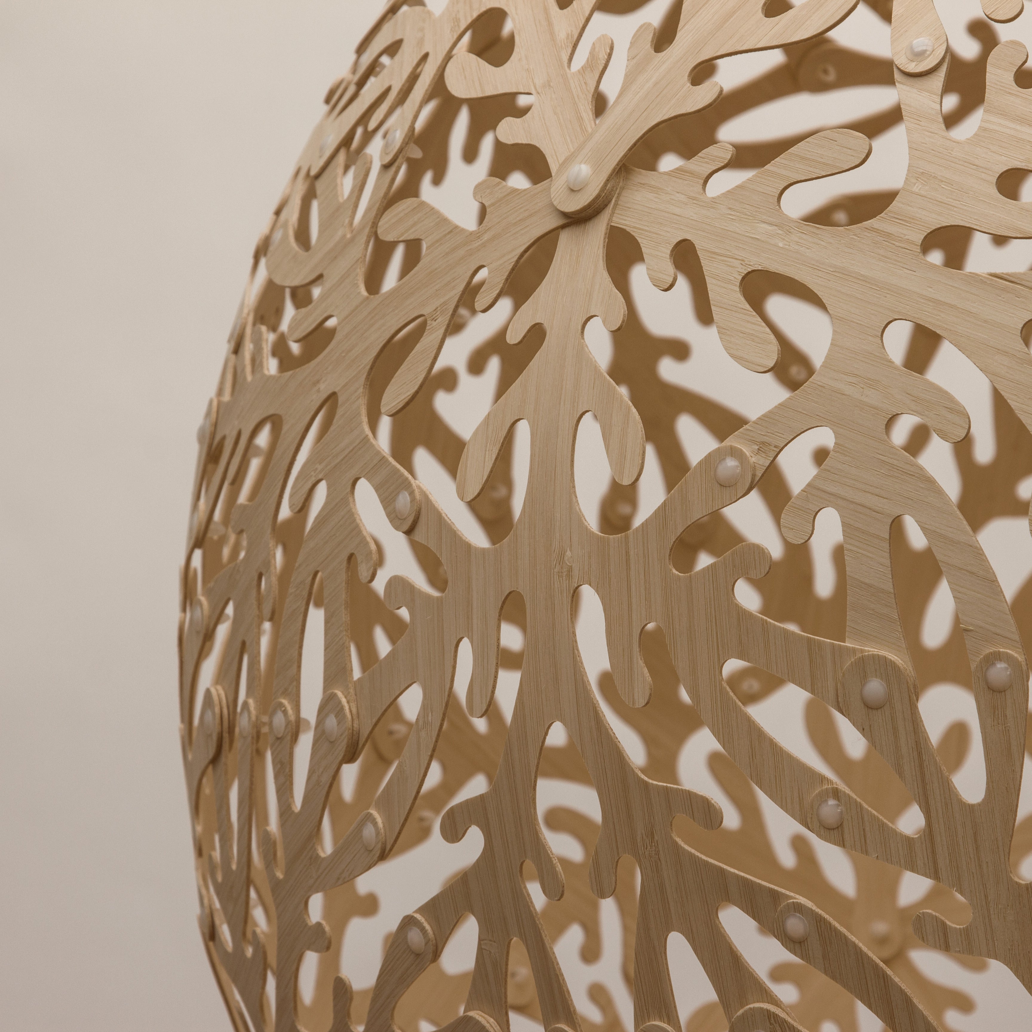 With the Sola Pendant Light, designer David Trubridge ruminates on Icarus, the Greek myth about the boy who flew too close to the sun. Echoing the heat that melted the lad's wings, the shade's intricate pattern looks much like flares that form and curl on the solar surface. In sustainably sourced bamboo plywood in a natural finish or natural with an orange interior to heighten the fiery effect. First acclaimed at a Milan design fair installation, along with David's sculptural Wing light (also at A+R), and subsequently acquired by the Pompidou Centre in Paris for its permanent collection.