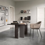Sheathed in leather or a fine textile, this Harbour Chair is a crisply designed but exceedingly comfortable seating option set on a sturdy 4-legged steel base. Suited to a variety of settings, it reflects its original multifunctional purpose at Audo's combined office, showroom and cafe in Copenhagen, with the molded shell's armrests turned outwards for ease and a supportively high backrest.