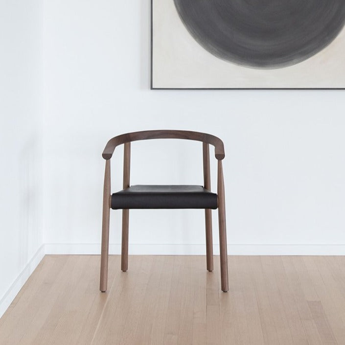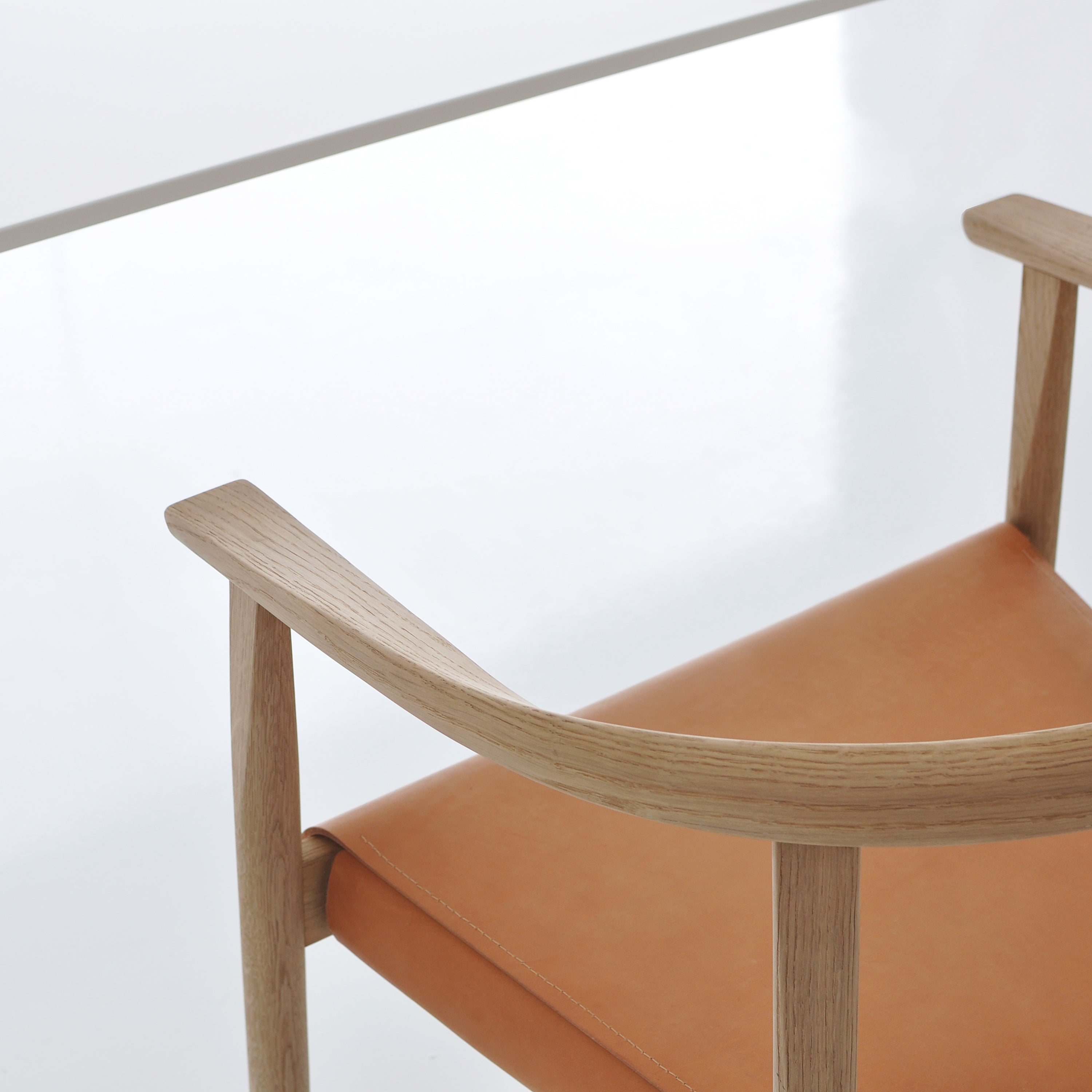 Nodding to both traditional Danish and Japanese influences, this armchair exhibits a continuous back curve that connects to the legs with traditional mortise and tenon joins. In solid oak or walnut with a removable saddle-leather seat, Tokyo’s wood finishes are an advanced water-based polyurethane that reveals the natural grain while being both durable and invitingly smooth to touch.