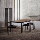 With a choice of leather or fabric seat, the upholstered Torii variant adds additional refinement to its harmonious presence. Recognized by its closely spaced back legs, broad seat and small arched backrest that references Japanese temple entrances, the minimal silhouette is rooted in carefully crafted traditional wood joinery. Both remarkably sturdy and soothingly comfortable, Torii is suitable for both residential and commercial environs.