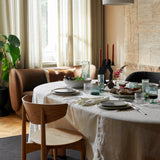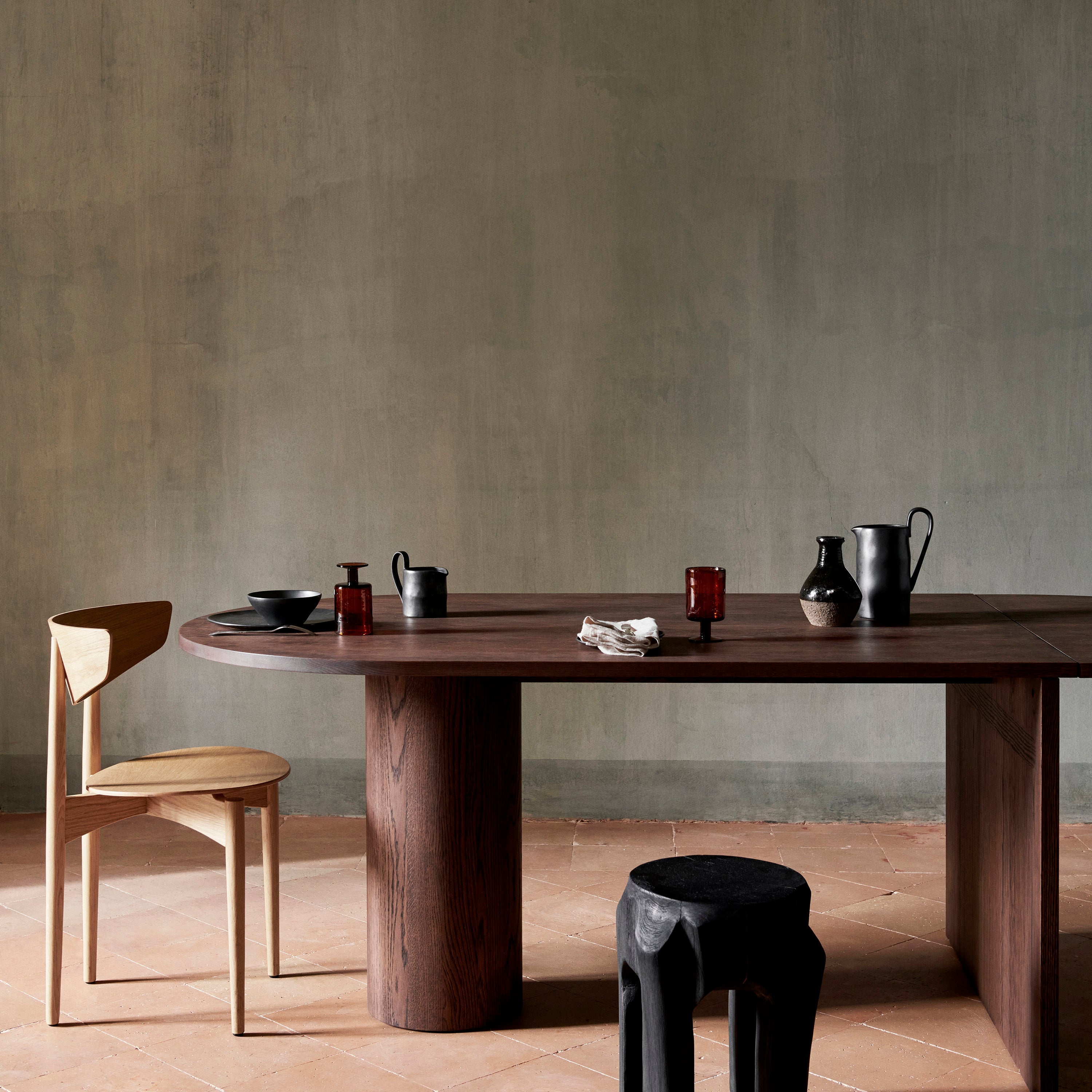 The Herman Dining Chair blends modern design with practical functionality. Constructed entirely from FSC™-certified wood, it features a solid natural oak frame complemented by a seat and backrest in natural oak veneer. The broad, curved backrest provides ample support and doubles as an armrest. Designed in collaboration with Herman Studio, the chair is stackable for convenient storage and is available in various finishes, including natural oak, black, and red-brown.