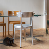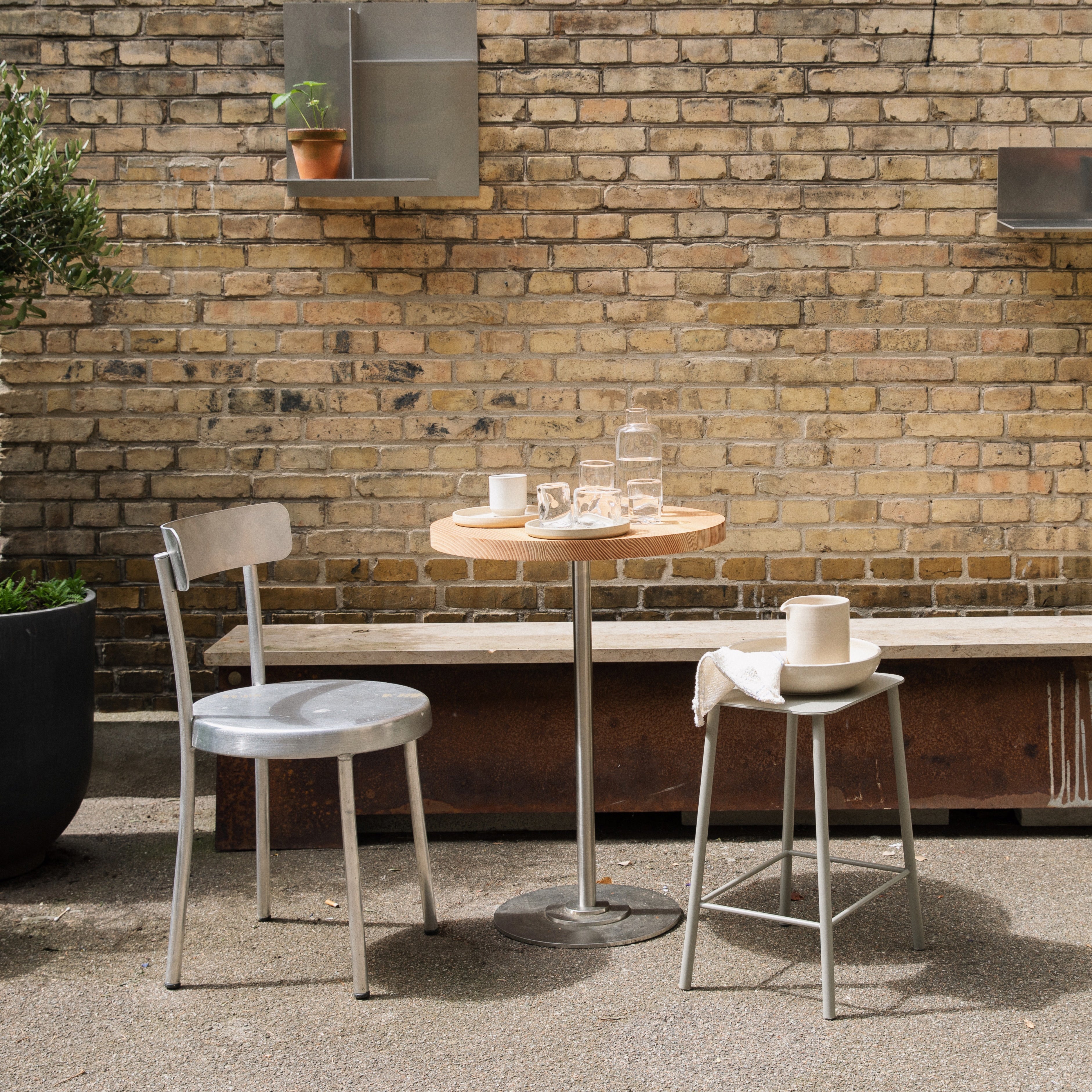 Inspired by the local taverns around Portugal called “tascas,” Pedro Sottomayor conceives an indoor-outdoor chair in natural raw aluminum. With a distinctive brushed finish done by hand, Tasca offers versatile minimalist seating that also embodies the qualities of traditional craftsmanship. A lightweight and durable choice with comfortable rounded proportions for extended sitting, its untreated surface will develop a mellow patina over time if left outdoors.