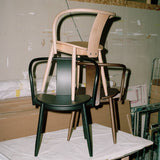 Design chief and founder Chris Martin blends both Nordic and Far Eastern style cues in Massproductions' wood armchair. Beautifully proportioned with rounded arms and a narrow backrest that contributes to its air of lightness, Icha is carefully crafted with artisan techniques from solid, layer-glued and steam-bent timbers. Available in a statement red lacquer as well as beech woodgrain finishes, it's both versatile and timeless.