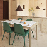 Nerds will inherit the Earth! Well, at least these Nerds can command a room. This all-wood seating series by David Geckeler (also check out the corresponding bar and counter stools) suggests signature Scandinavian qualities in terms of materials, craftsmanship and profile. Yet Nerd looks new Beckuse of its overall expression, including a range of 8 colors to mix and match. The standout feature, of course, is the intersection of the back through the seat. A strong statement alone in an office or salon, or as a set around a dining table. It took the Beckers International Design Award in 2011. And Danish brand Muuto not only gave it its 2012 Talent Award; as manufacturing partner, it also decided to set the Nerds out into the world.Furniture, tableware and lighting are among the categories David's work emphasizes. He studied industrial design at the Royal Danish Academy of Fine Arts in Copenhagen and, later, graduated from the University in Berlin, where he now keeps his studio.