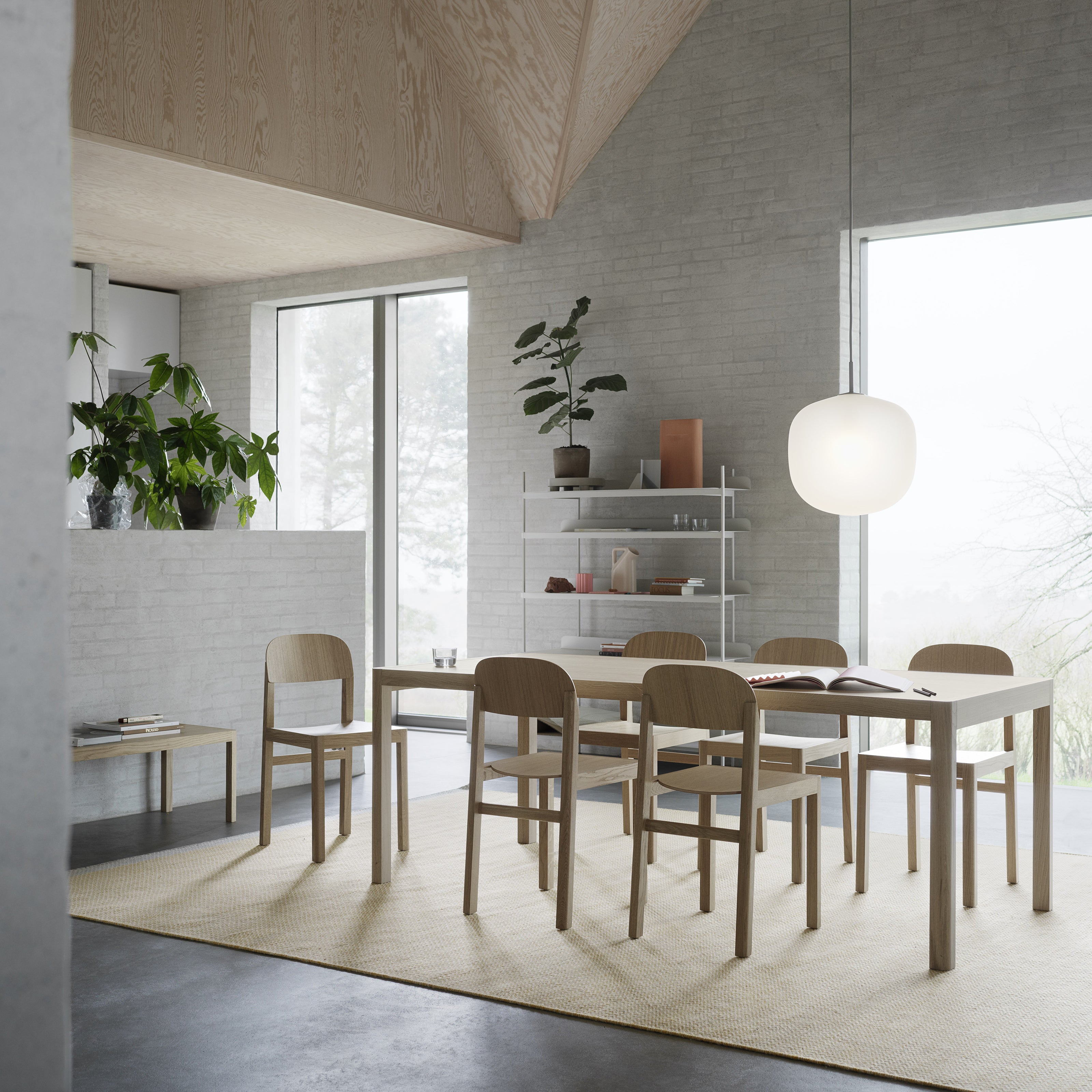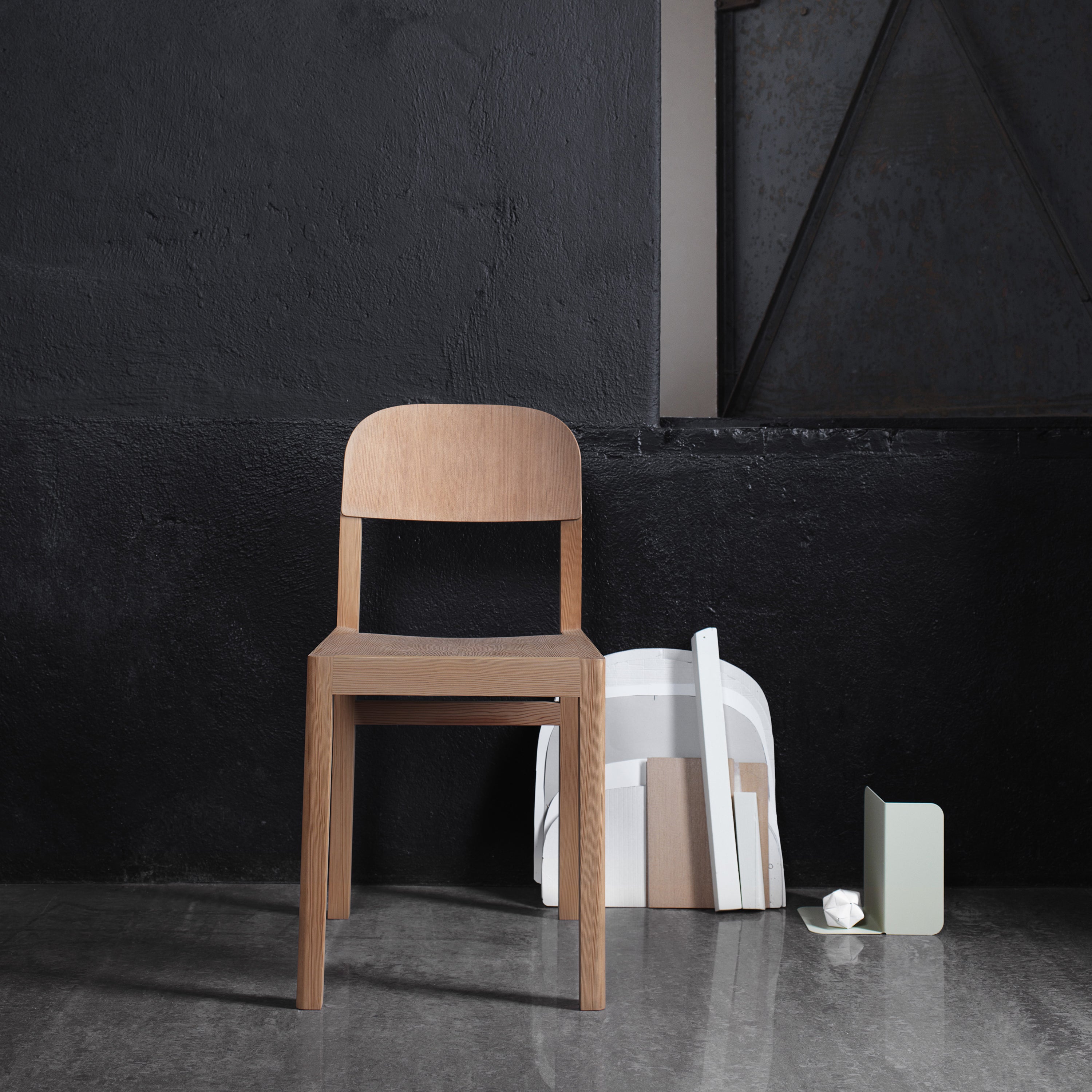 The archetypal chair at its most fundamental. Refined joints are among the celebrated yet understated details of craftsmanship in this aptly called Workshop Chair by celebrated industrial designer Cecilie Manz for Danish house Muuto. The Oregon Pine or oak wood legs and veneer-skinned back and seat reveal the visible wood grains.