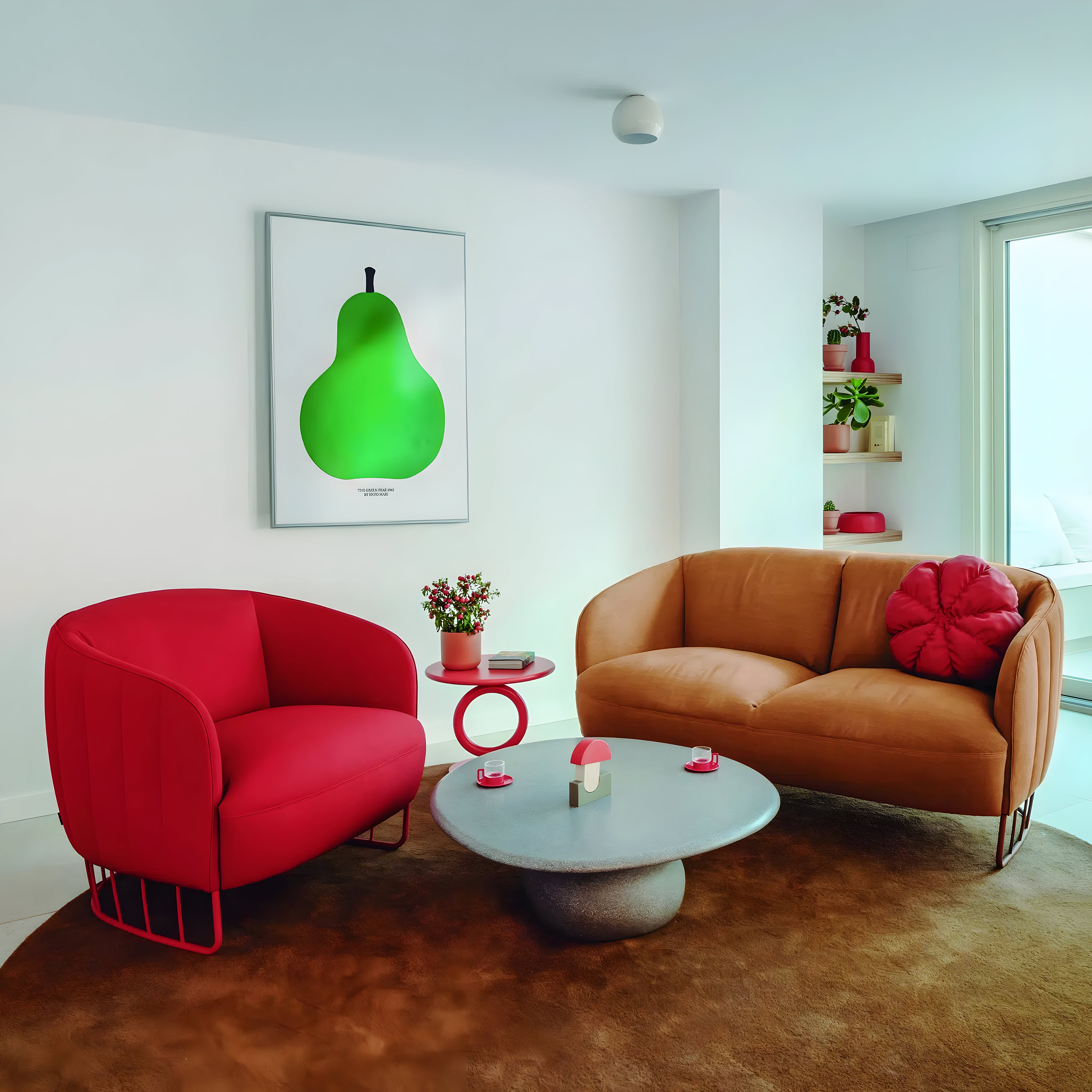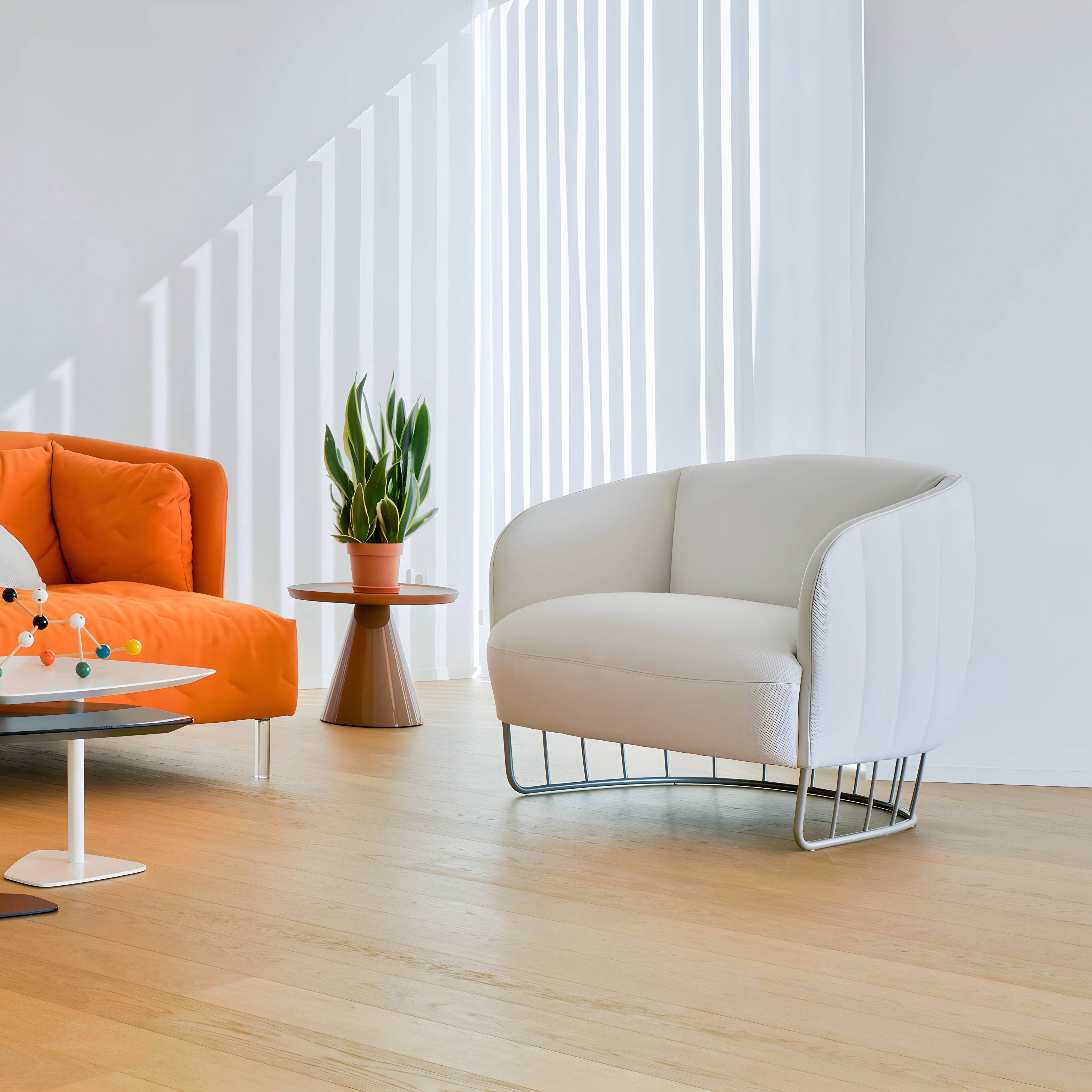 Inspired by the shape of Spanish wine barrels, the Tonella Soft Armchair features linear quilting on its outer shell that echoes the look of wooden staves. The seat, back, and arms are made from molded polyurethane foam for lasting comfort. Its compact size makes it well-suited for different settings.