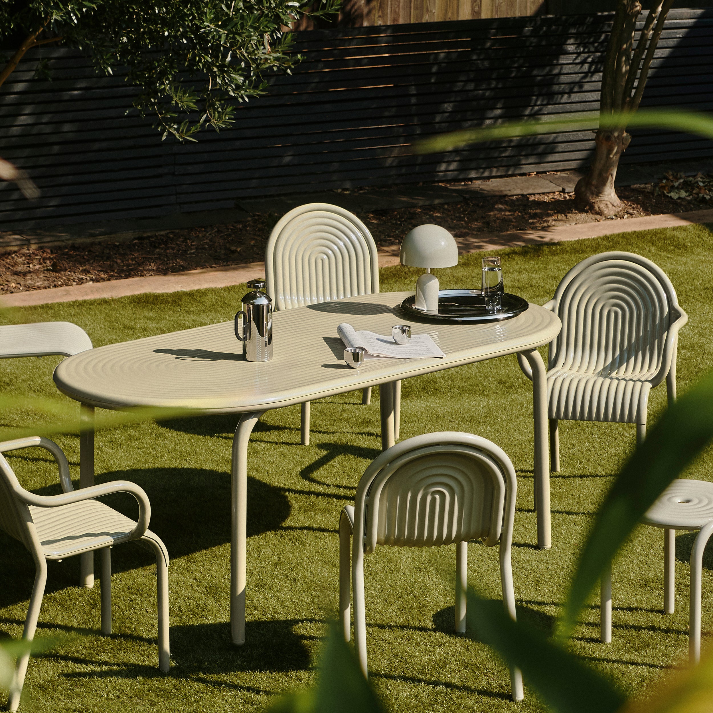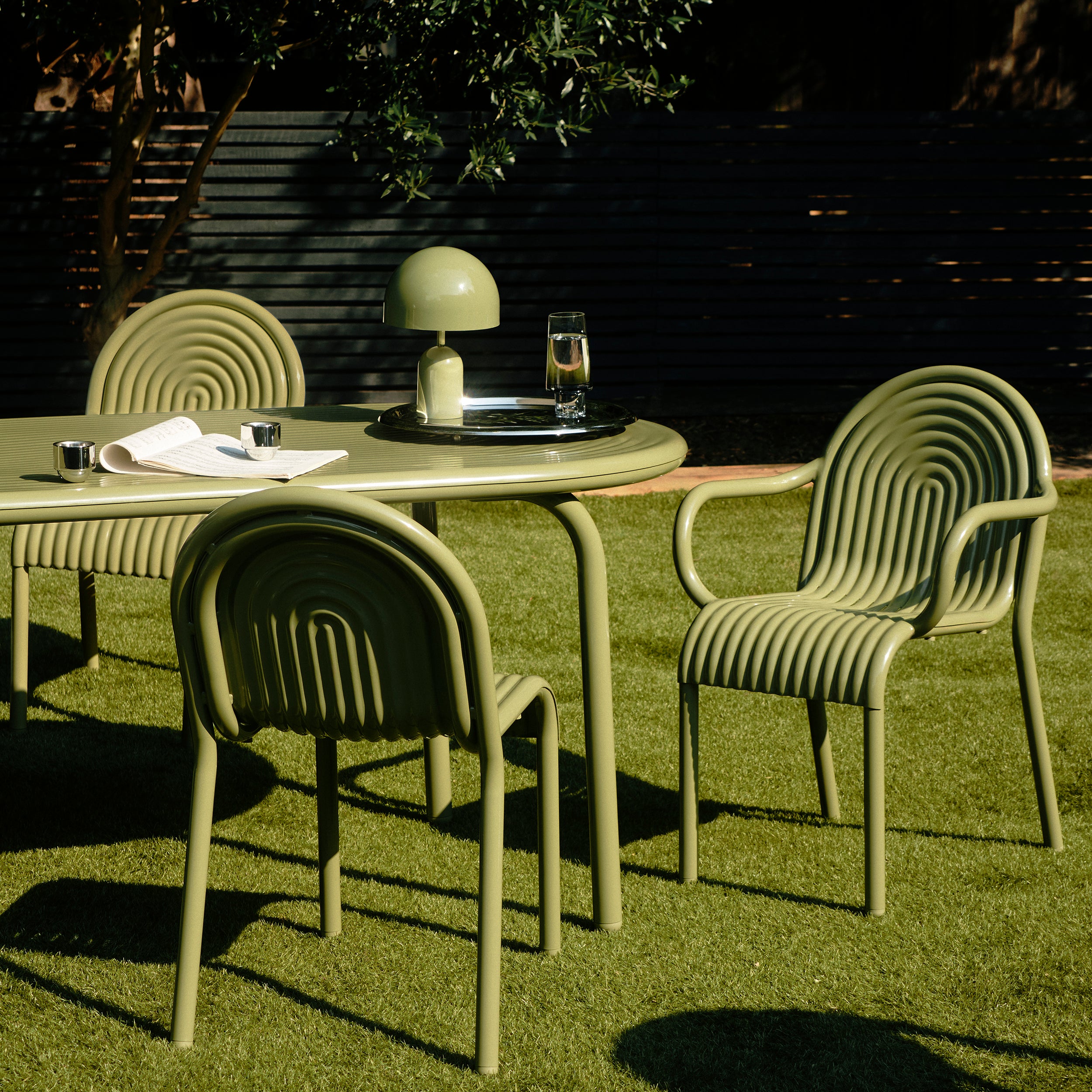 Crafted from durable, corrosion-resistant aluminum, the Groove Armchair is designed to withstand various weather conditions, making it ideal for outdoor use. Its high-quality polyester powder-coated finish is both solvent and VOC-free, ensuring environmental safety. The armchair is available in two sophisticated shades—Moss and Putty—and can be stacked up to six chairs high for convenient storage. Optional seat cushions enhance comfort during extended use. A part of the Groove Collection.