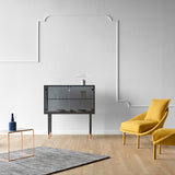 With clear panels on all sides, Juno gives a 360 degree view of the treasured objects or collectibles on display. An updated take on a classic vitrine from Florence design e-ggs, it's styled with a contemporary squared-off shape and elegantly tall legs. The horizontal cabinet is available in 2 heights and is fashioned from solid wood in a range of finishes and smoky gray glass.