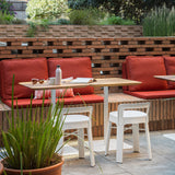 Adding a low backrest makes for an inspired move with RS Barcelona's ur-stool Umbra. Ombra means "shadow" in Catalan, and the ubiquitous stool created by Emiliana Design Studio also gets points for its generous proportions and ergonomically shaped seat. The seating is fashioned in lightweight but durable steel with a sturdy electro-coated finish. The range of appealing polyester-paint colors serve equally well indoors or outside, just the ticket for a spell of comfortable sitting.