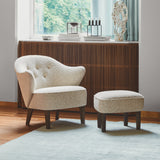 A compact footstool complements the Ingeborg easy chair named for the mother of Danish brother designers Flemming and Mogens Lassen. Originally designed in 1940, it offers put-your-feet-up repose without taking up too much space—or use it for ad-hoc seating. With oak legs, the footstool (and matching chair also at A+R) are available in a custom fabric, stocked bouclé or luxurious natural sheepskin.