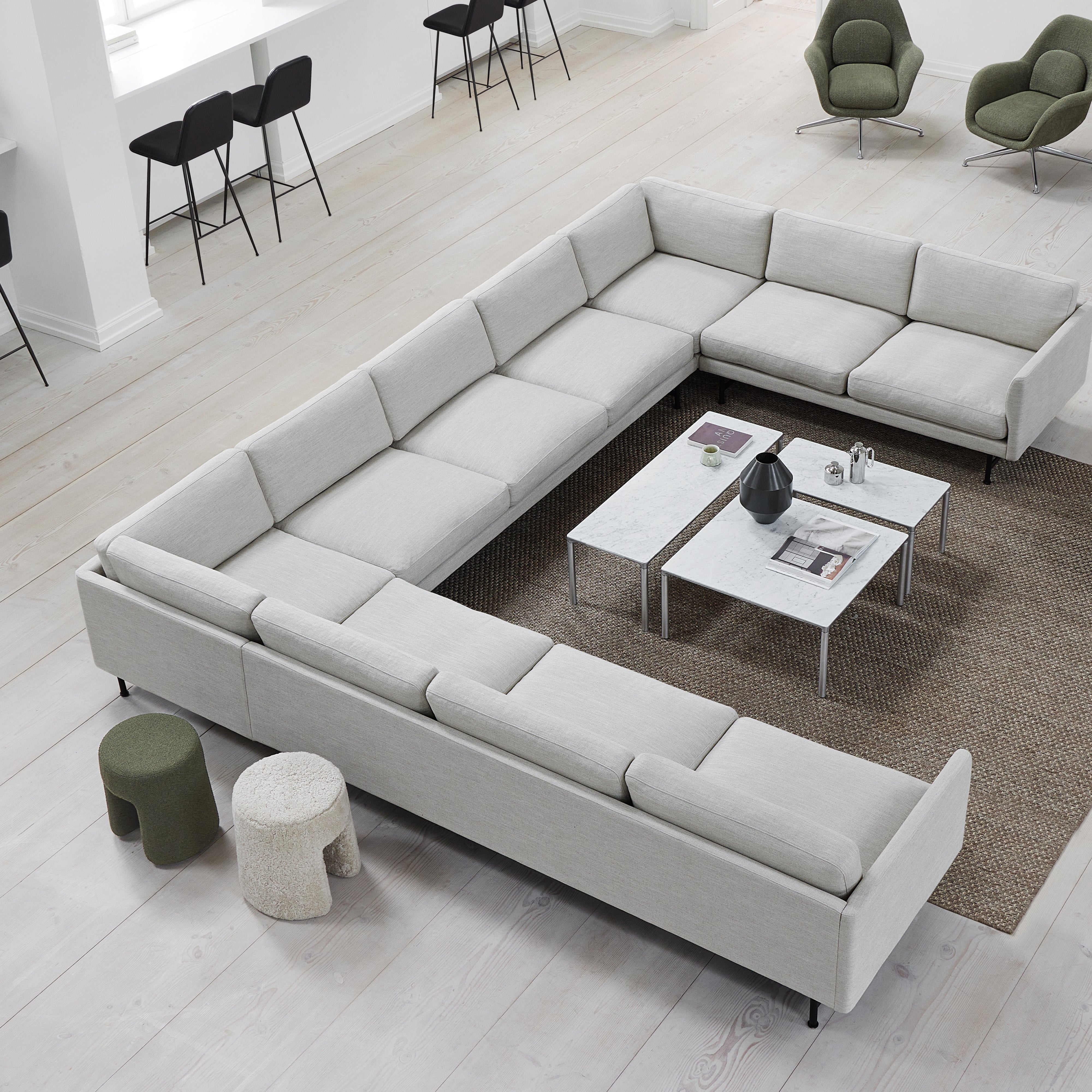 Built for durability and adaptability, the Piloti Alu Table in its large format features a sturdy aluminum frame designed to meet the demands of everyday use. The table's overall character shifts depending on the selected tabletop—available in materials such as stone or Fenix NTM laminate with a black core—making it suited to a wide range of interior contexts, from shared spaces to work settings and residential interiors. Its straightforward construction emphasizes practicality.