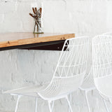Of his brand Los-Angeles-based company Bend, founder Gaurav Nanda says he wanted "to offer something different, something edgier, a lot more intricate and comfortable" in the realm of wire furniture than the usually-admired but heritage Bertoia designs for Knoll. For inspiration Gaurav looked to an unlikely combination of sources: his own stint as an automobile sculptor/designer for General Motors on the one hand and an appreciation of 1970s-influenced crafts, including string art and the knotted patterns of macramé plant holders made by his mother, on the other.