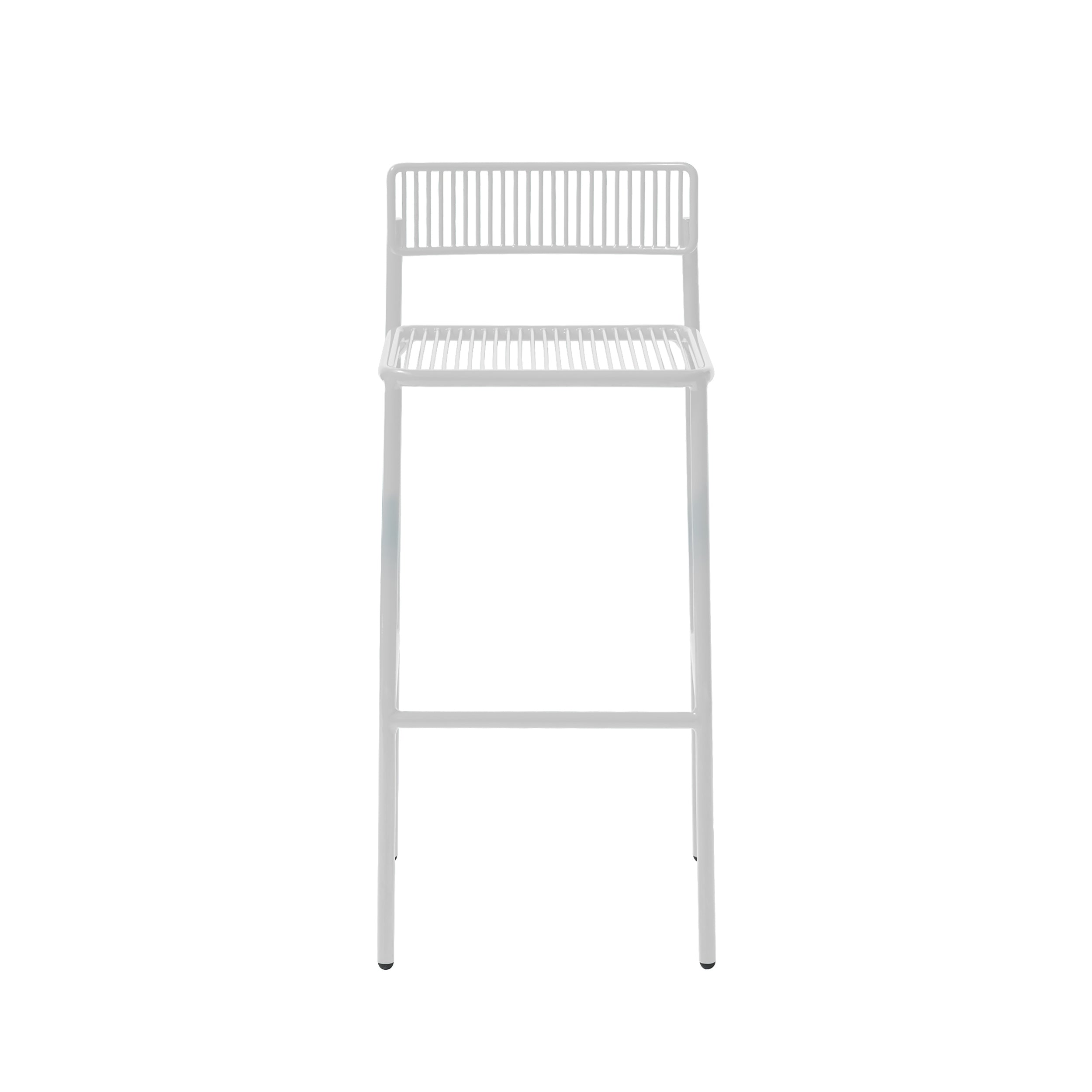With trim, linear appeal, Bend Goods extends its Rachel seating as a handsome stool in either bar or counter height. Suitable for both indoor and outdoor environs, it's handcrafted in recyclable iron wire and treated with the company's proprietary hot-dip galvanization before the final powder-coat finish to help fight corrosion for added durability and longevity. Choose from classic black and white or pick sunny yellow or peacock blue for a bracing dash of color.