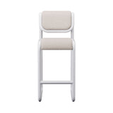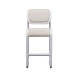 Elevating style in more ways than one, Bend Goods' captivating cantilever design includes a bar and counter stool with a padded seat and backrest featuring nubby bouclé or rich vegan leather upholstery. Tube collection’s signature bold frame is fashioned from sleek aluminum in complementary powder-coated hues.