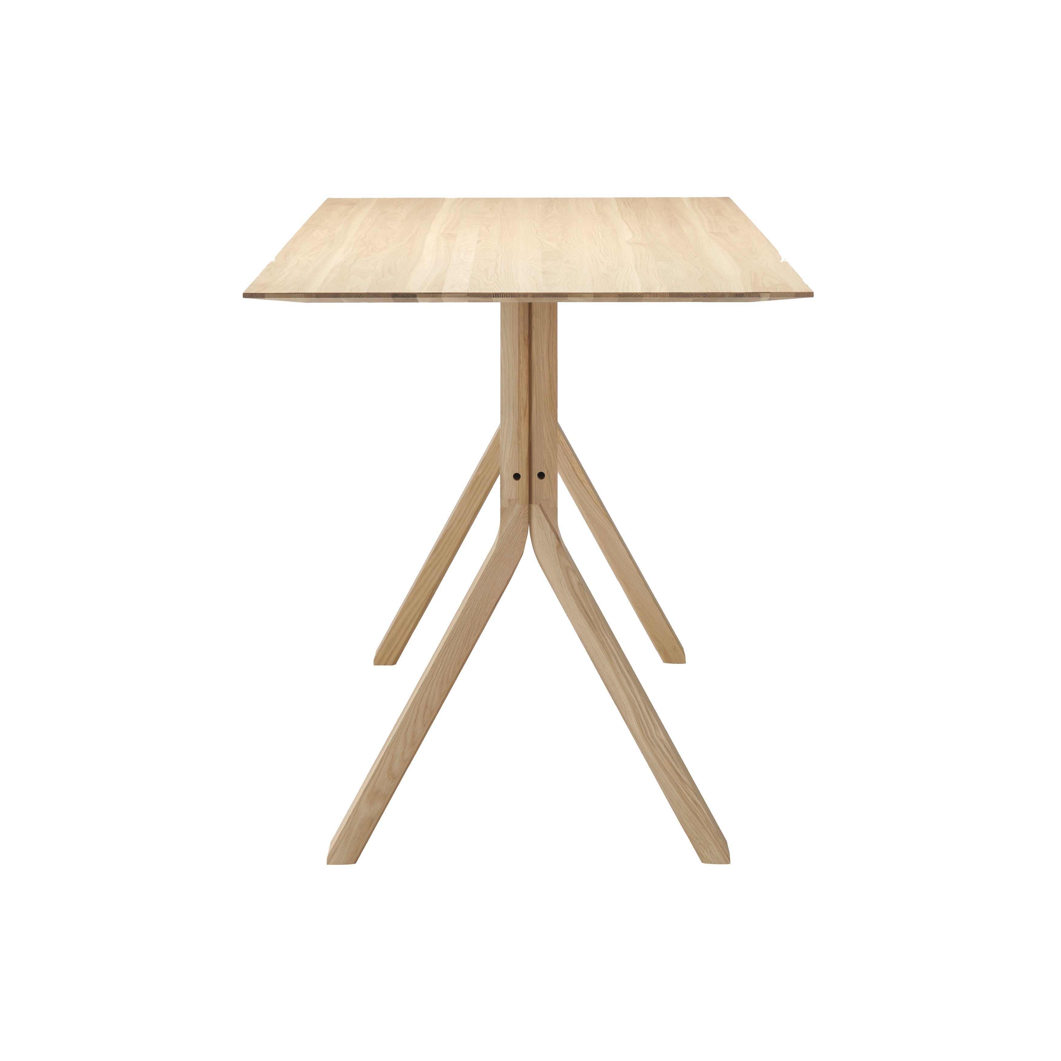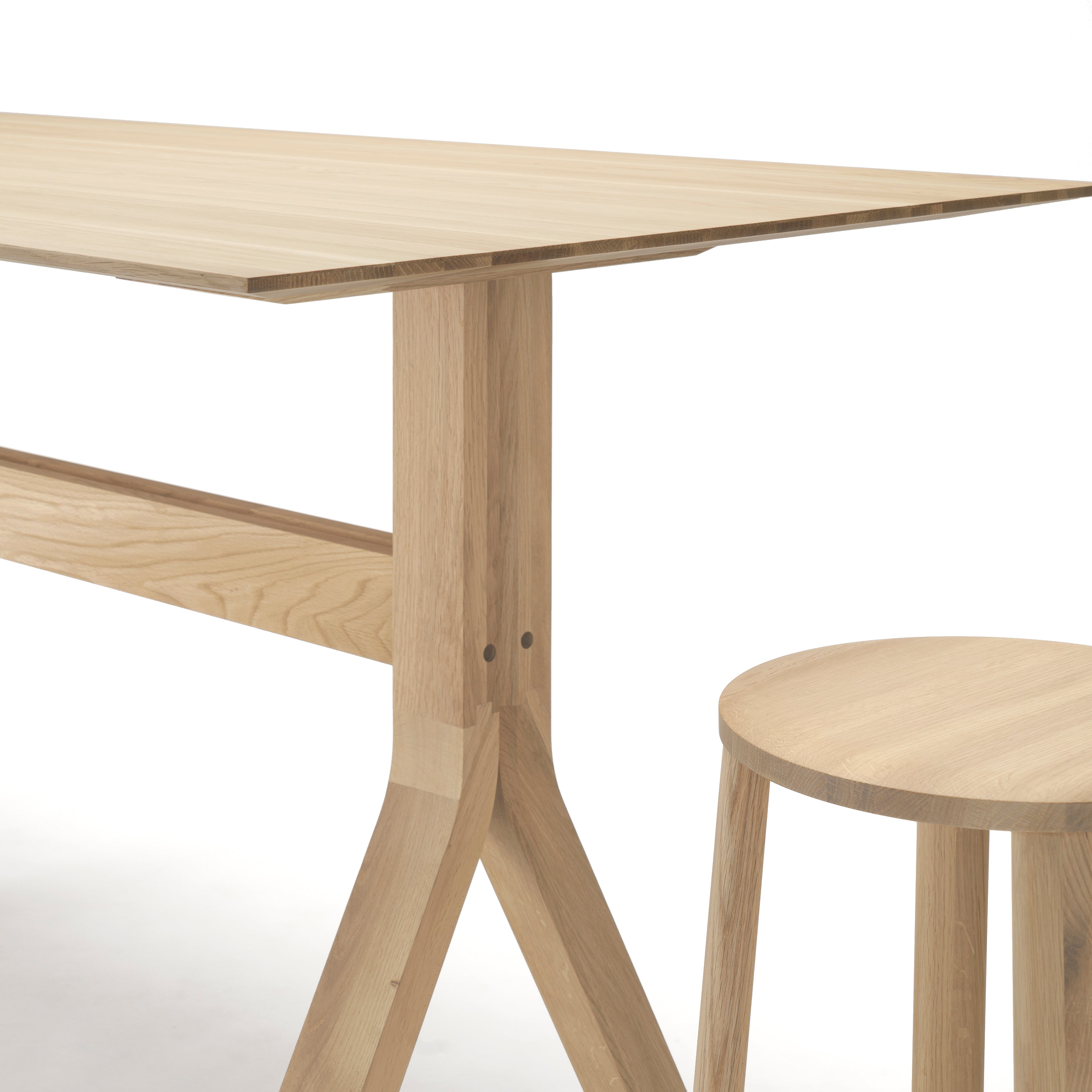 Berlin studio Geckeler Michels functionalist approach marries with a sense of Japanese minimalism in Spectrum High, conceived for dynamic working or for ad-hoc meetings for 4 to 6 people while standing or sitting on stools. With a distinctive trestle base, Karimoku New Standard's carefully crafted table is made from sustainably sourced, solid Japanese oak and offers the choice of a black or natural finish.