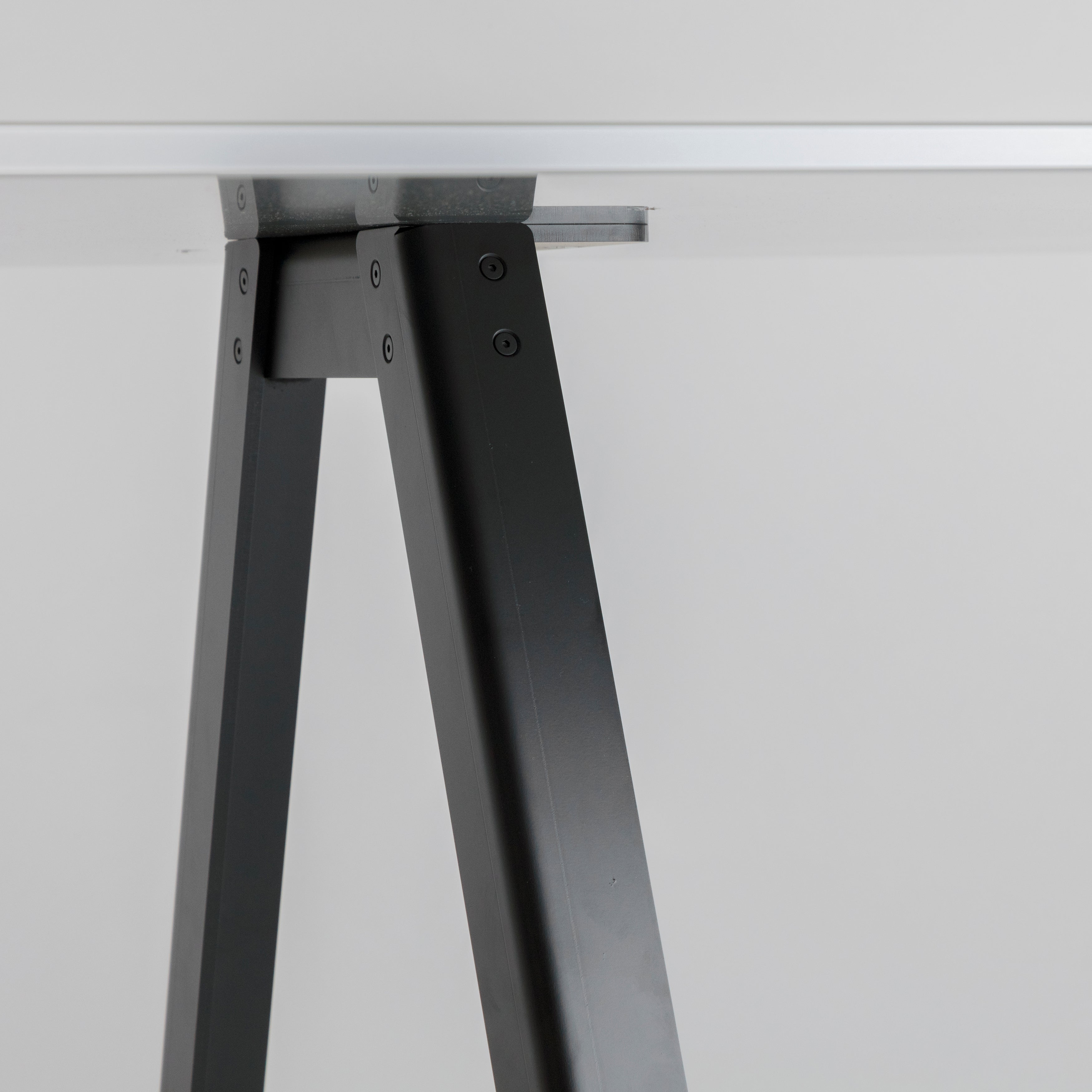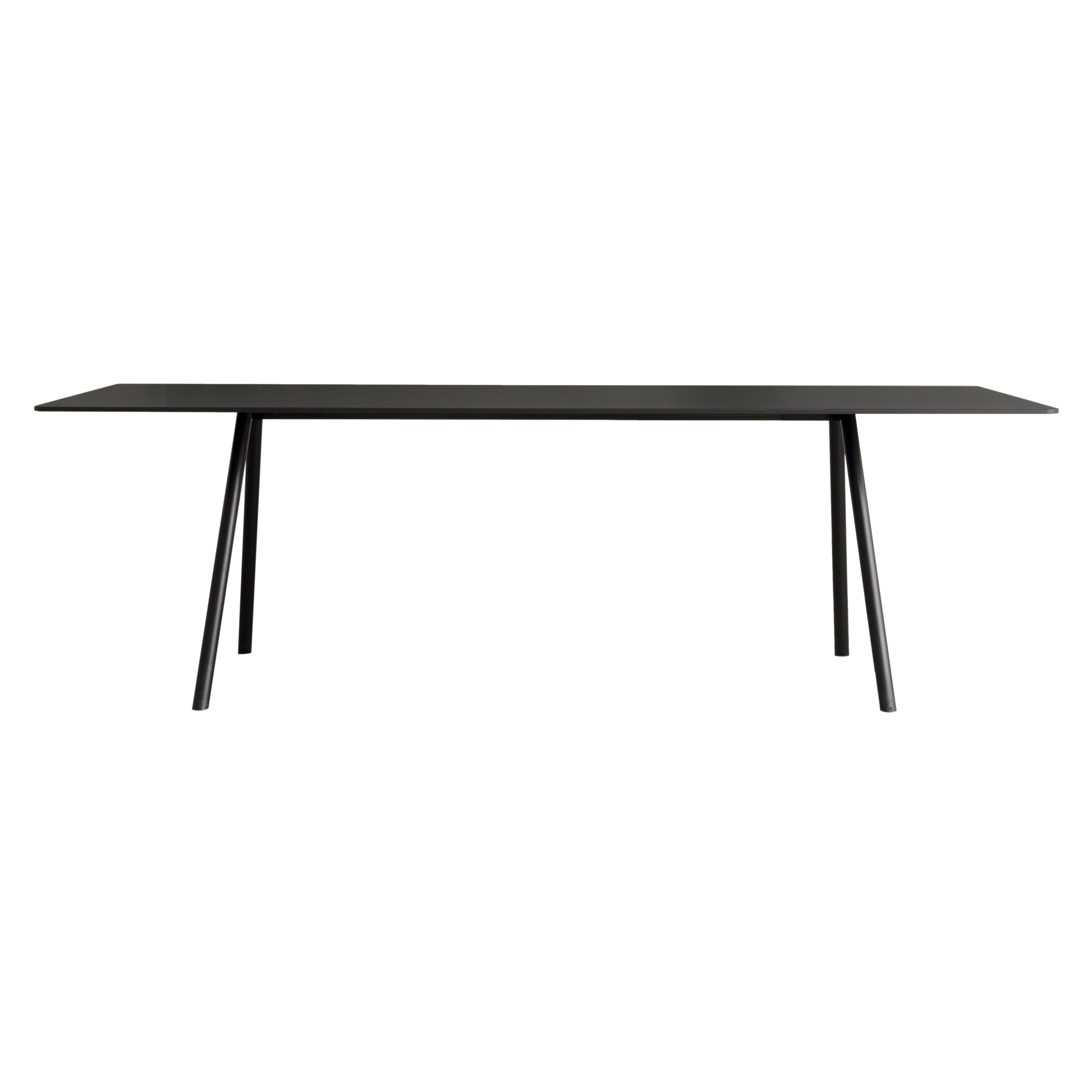 An outdoor version in the Aluminum Table System series features angled pipe legs paired with the signature featherweight but remarkable strong tabletop in ultra-thin aluminum honeycomb. Japanese designer Keiji Takeuchi exploits the precise technology of the airplane-graded material by anodizing the entire top panel after machining for an appealing shine. In silver or black finish with contrasting or matching elements, the table has a simple screw-in construction for easy DIY assembly.