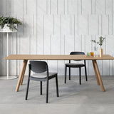 Milan-based Keiji Takeuchi sees his oaken Zuno as a stacking chair that was long overdue, with a functional beauty that suits both home and workspace. The sturdy solid-wood legs assure stability while the broad, comfortably curved backrest and seat is pitched at just the right angle. It’s offered in a range of calm-minded color variations as well as a natural finish.