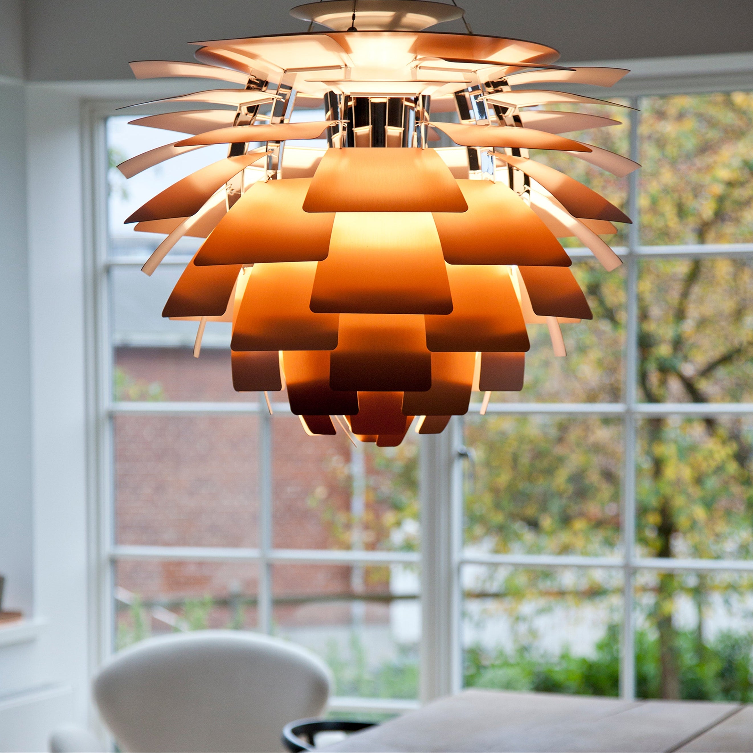 Breathtaking in form, the extra-large version of PH Artichoke, like its sister pendants, features 72 precisely positioned leaves in concentric rows to provide glare-free light from any angle. Still largely made by hand, Poul Henningsen’s sculptural circa-1958 design, now powered by an LED, is offered in a range of metallics or a powder-coated finish.