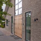 The Toldbod Outdoor Wall Lamp features a design based on the PH Ellipse reflector. The outdoor lamp features a matte white painted interior, ensuring a soft and comfortable light output. It is constructed from durable materials such as die-cast aluminum and tempered, sandblasted glass, available in finishes like natural aluminum and black.