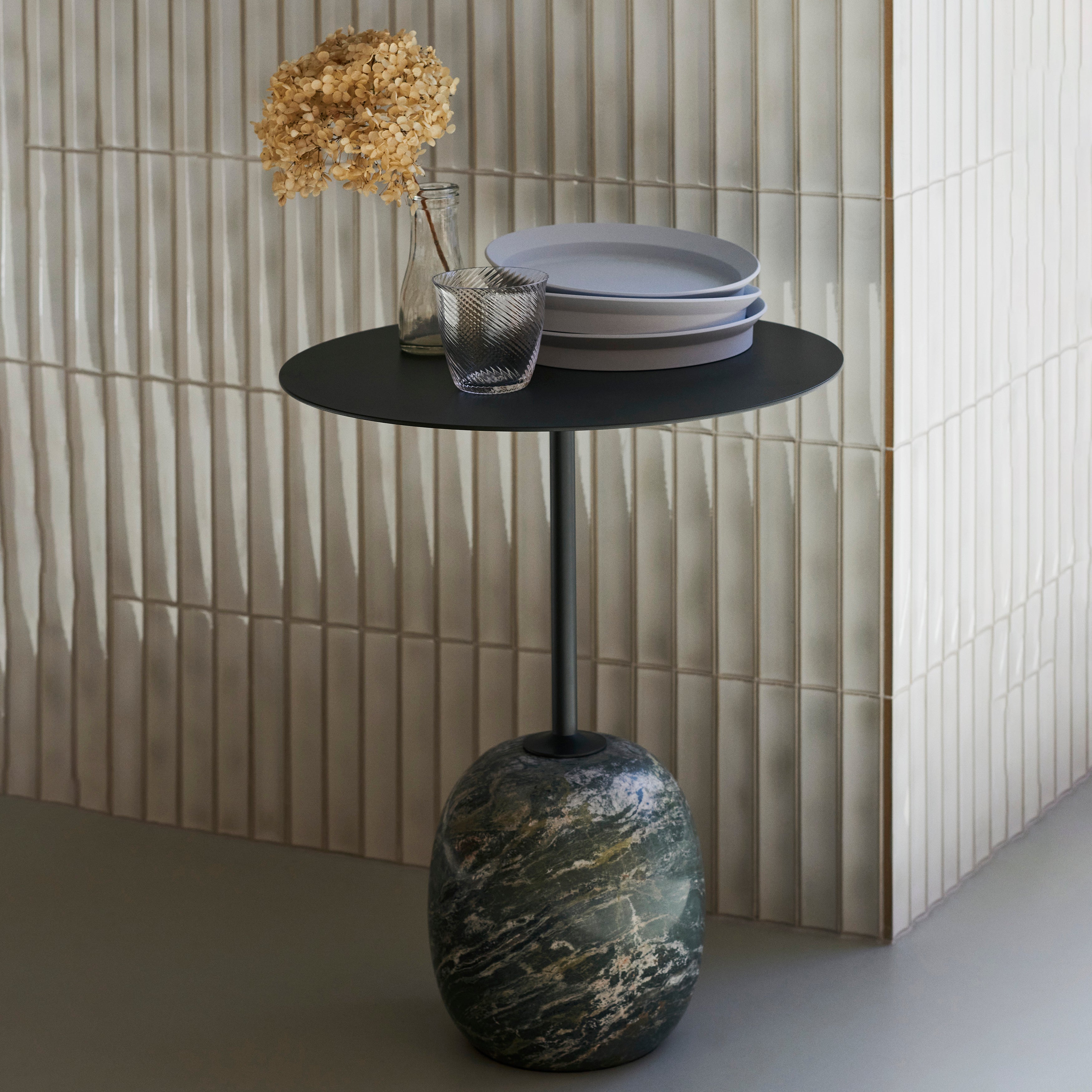 Part sculpture, part side table and all beguiling, Lato combines a laser-cut steel tabletop with a powder-coat finish and a solid marble base shaped on a lathe and then honed to a semi-matte sheen. Amusingly, designer Luca Nichetto was originally inspired by the idea of a lollipop turned upside down. But growing up observing the artisans on his native island of Murano, he also had an idea how to interpret that playful notion into something more luxurious. LN9 is the smaller version in the series and has an oval tabletop, available in ivory metal with a Crema marble base or a warm black metal with an Emparador dark marble base.